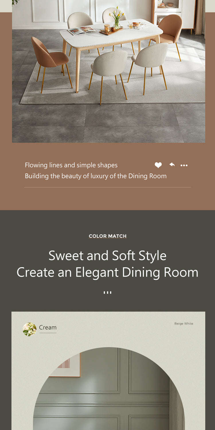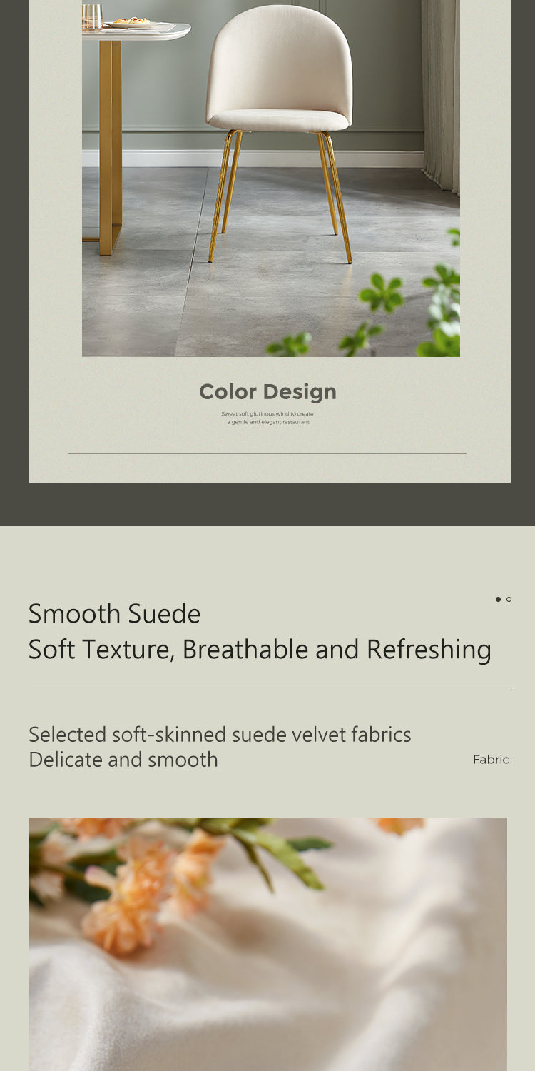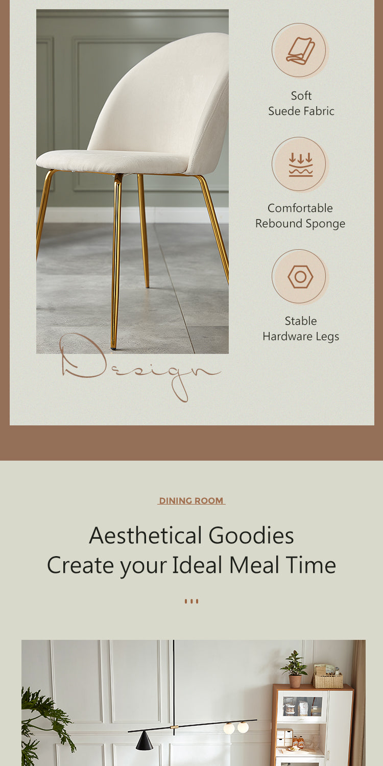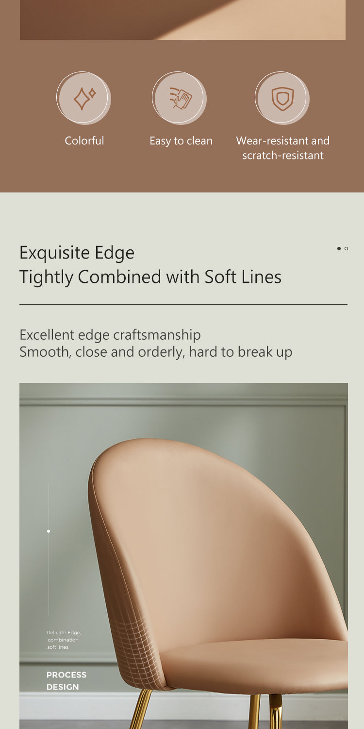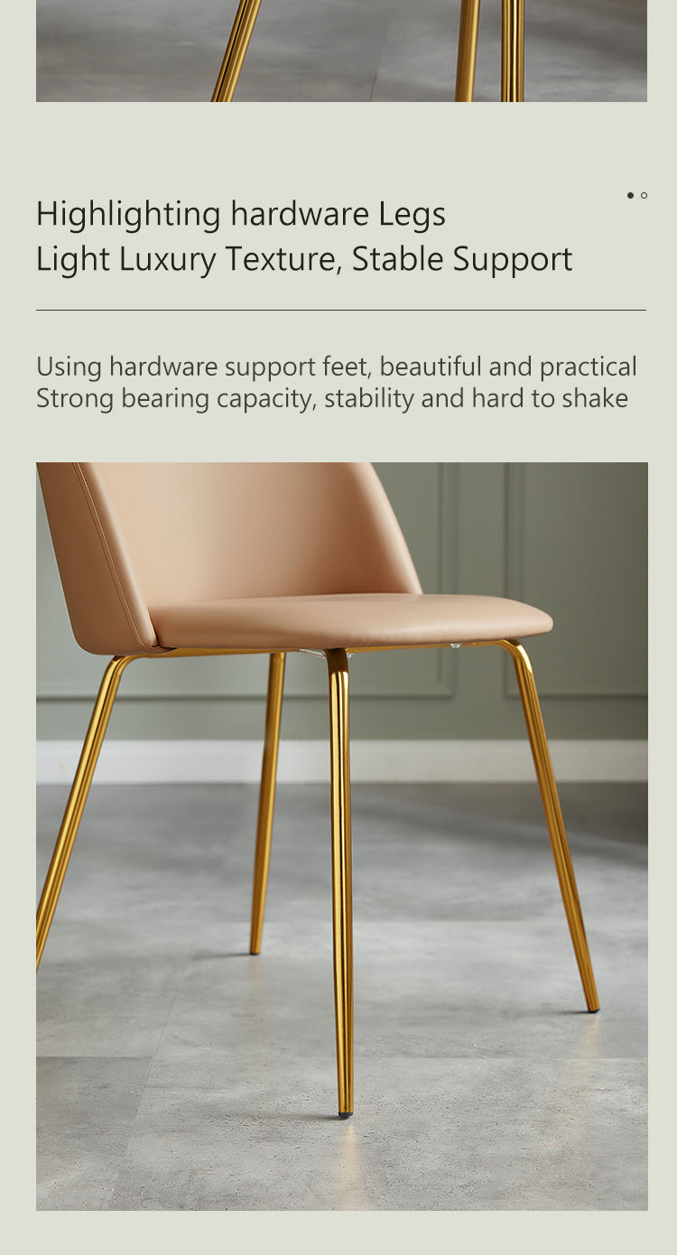 A masterpiece of elegance and practicality, this dining chair boasts a sleek, pristine white finish that speaks of modern sophistication. Its understated design is accentuated by delicate golden legs, adding a touch of glamour to any dining setting.