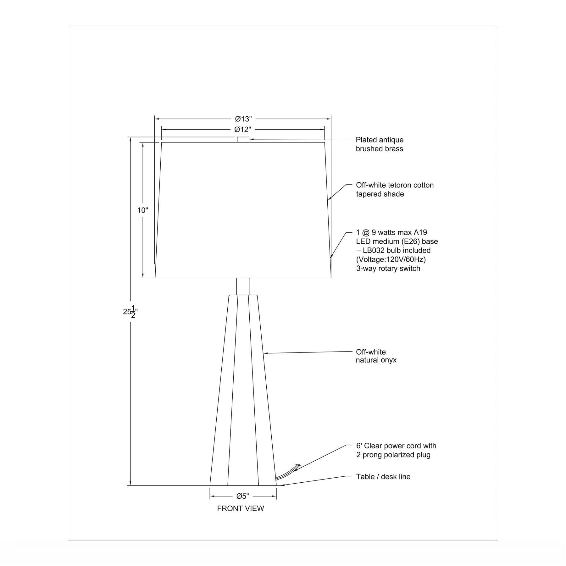 Sculptural onyx forms the tapered, faceted base, capturing light with natural veining for inherent visual texture. This European-inspired silhouette introduces cool, sophisticated materiality to any console or side table setting.