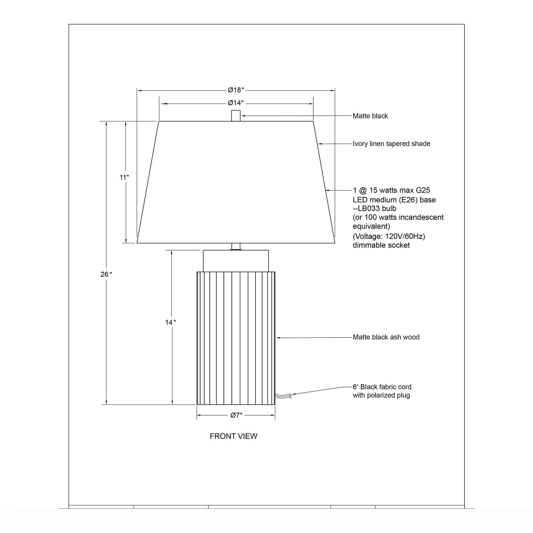 Capped by a crisp, tapered linen drum shade, this lamp casts a diffused, inviting glow across reading nooks or console displays. The Steven Sabados design marries natural materiality with sharp, contemporary geometry.