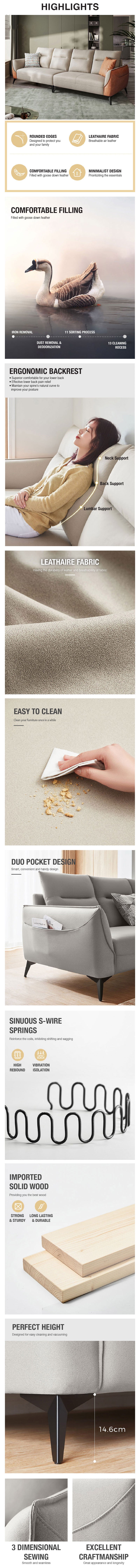 Crafted for ultimate comfort, this sofa features breathable upholstery, ideal for warmer climates. High-density foam cushions provide unrivaled support, while the feather-filled backrest offers a plush retreat for relaxation, creating a haven of comfort in your own home.
