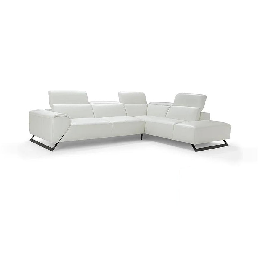 Experience luxurious comfort with this stunning full-grain leather sectional sofa. Its sleek, modern design is complemented by adjustable headrests, ensuring a customizable seating experience. Perfectly proportioned to enhance any living space, this Italian-made masterpiece offers both style and functionality. The pristine white leather cover adds a touch of sophistication, making it a timeless addition to your home.