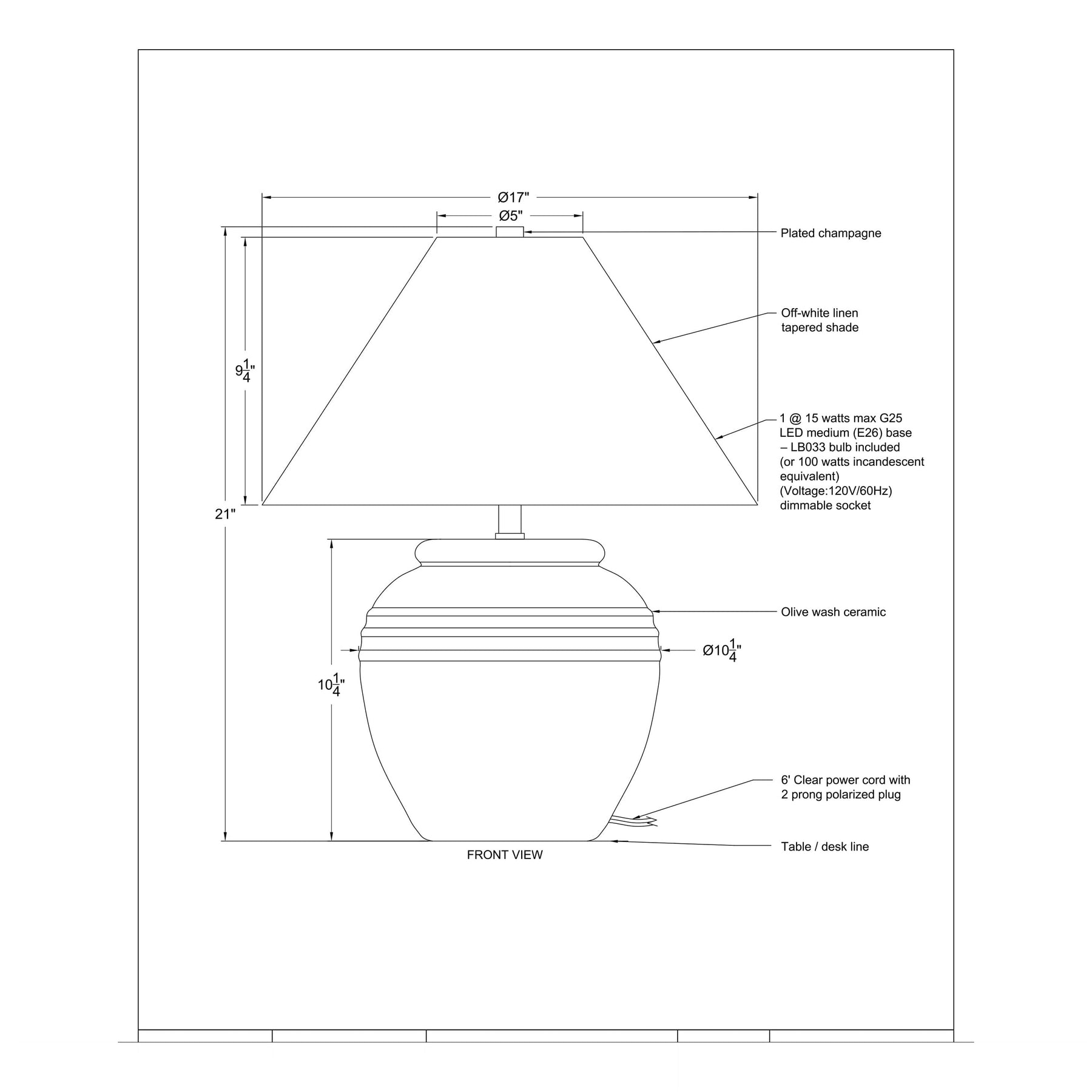 Complementing the base, a crisp, off-white tapered linen shade diffuses light softly, creating a warm, inviting ambiance. Champagne-plated hardware provides a subtle, refined accent that bridges rustic texture with tailored elegance.