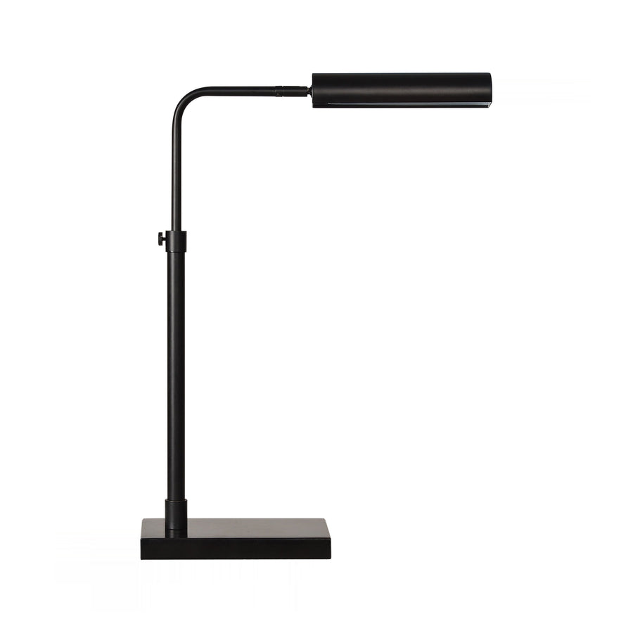 Sleek, architectural lines define this task lamp, rendered in commanding matte black iron for enduring, minimalist presence. Its clean silhouette channels refined mid-century drafting aesthetics into a modern lighting centerpiece for sophisticated interiors.