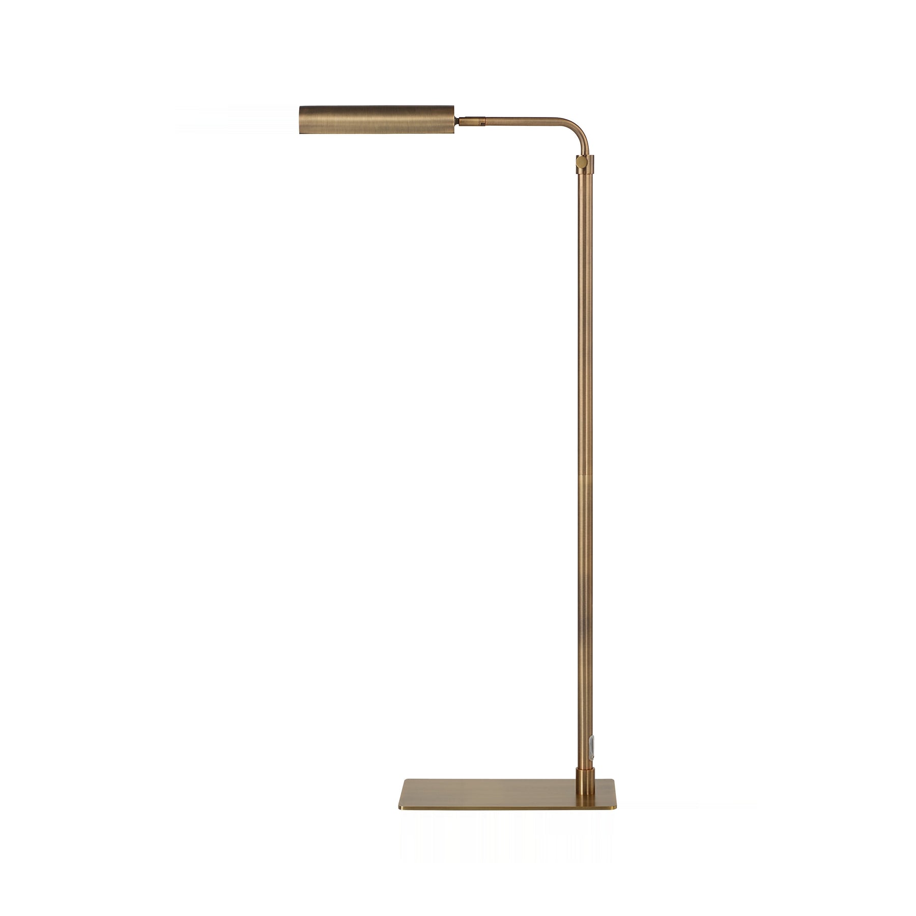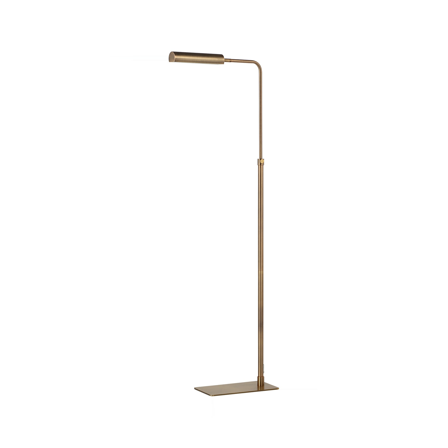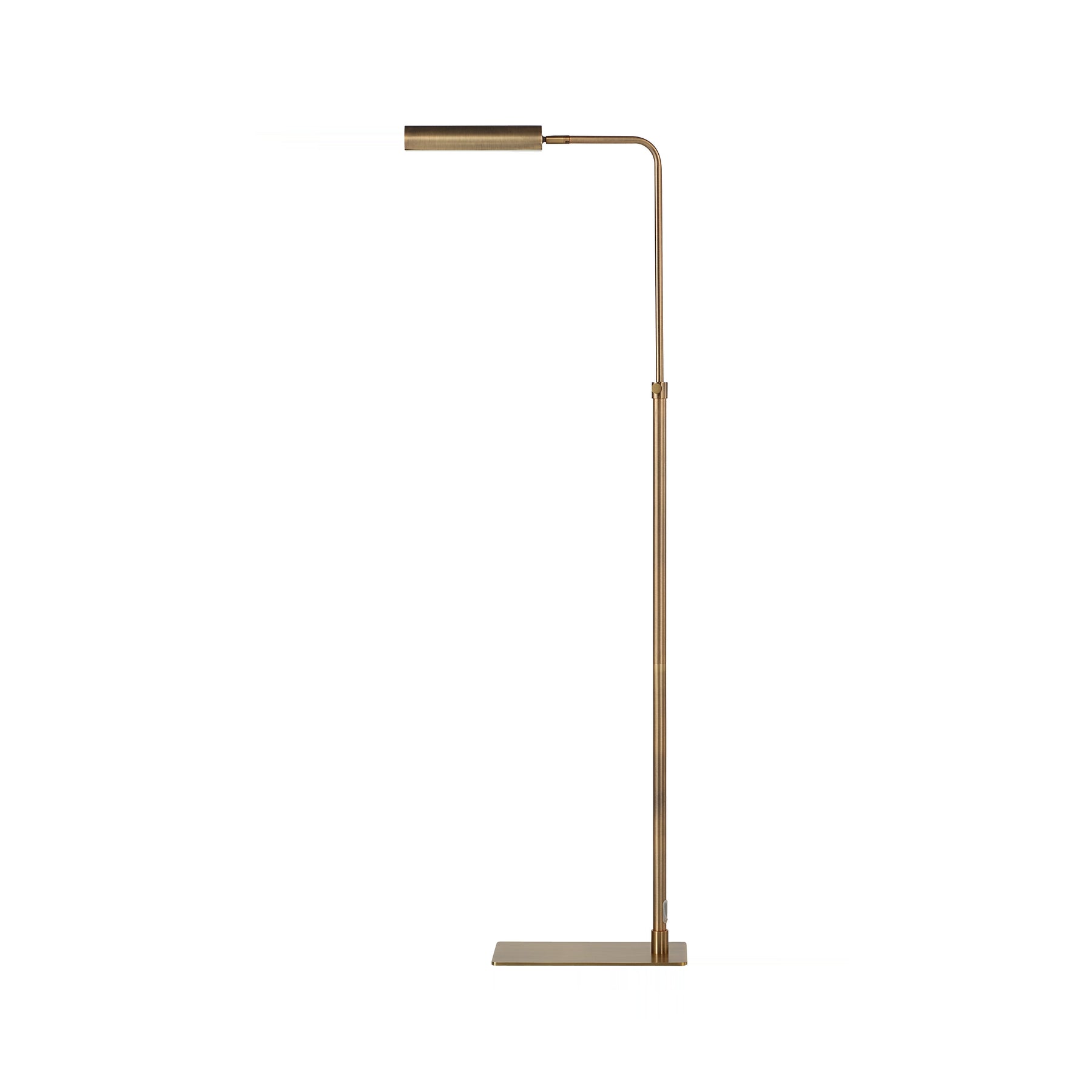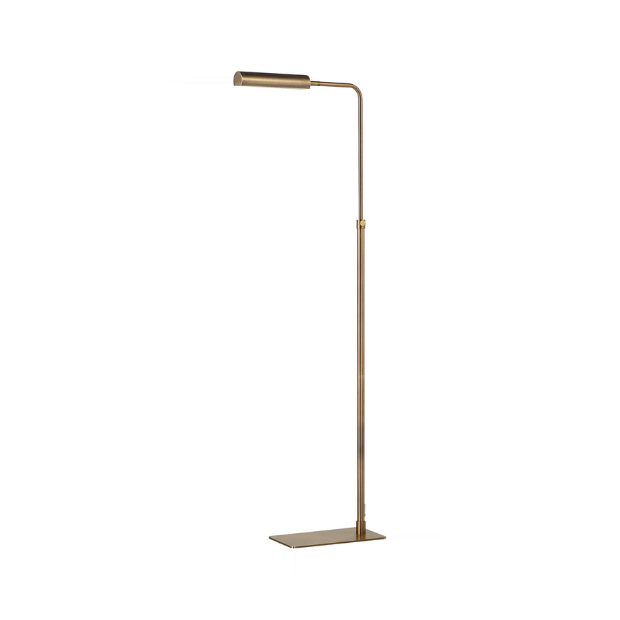 Slender metal silhouette defines this task-focused floor lamp, showcasing a warm, plated brushed brass finish that elevates transitional interiors. The clean, architectural lines offer focused illumination, perfect for reading nooks or stylish home offices demanding refined utility.