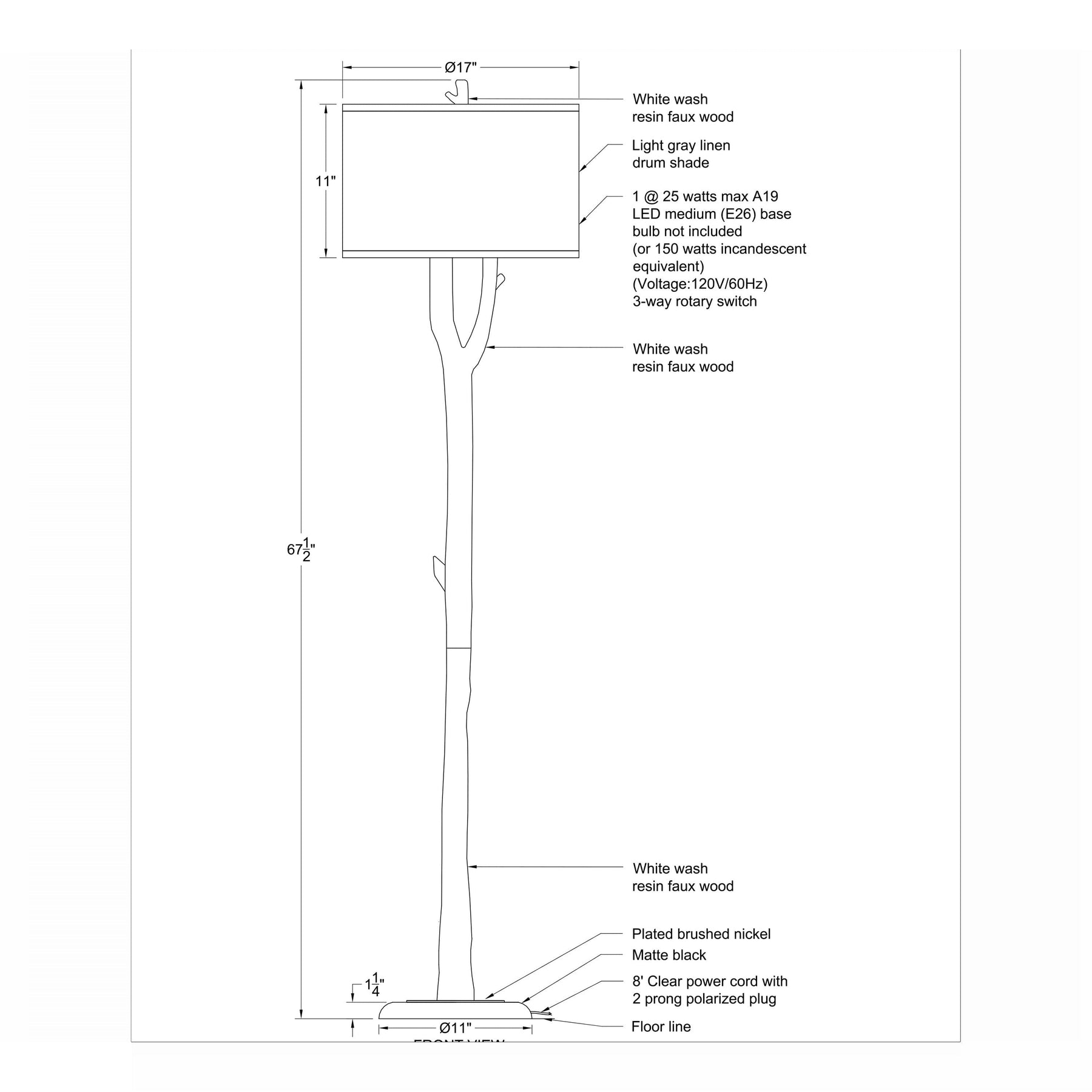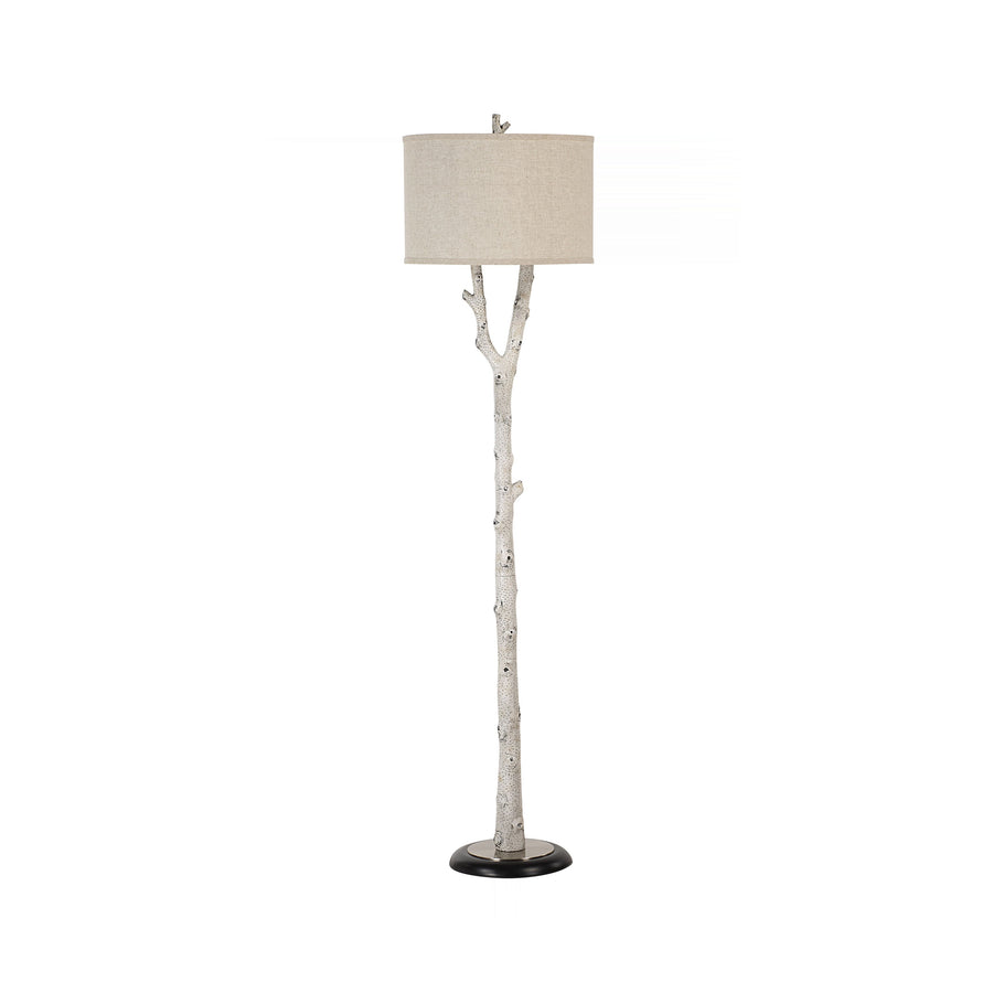 Sculpted entirely in the organic silhouette of a birch branch, this lamp introduces striking woodland artistry to your interior design scheme. The textured, whitewashed finish contrasts beautifully with the classic, neutral linen drum shade for an elevated rustic statement.