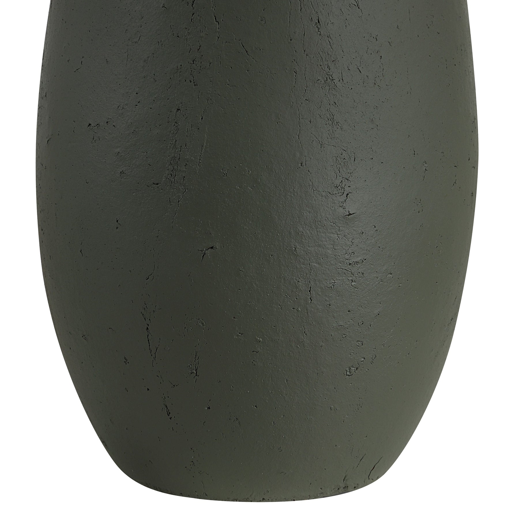 The organic, gourd-shaped ceramic base anchors the silhouette with a deeply textured, muted olive finish that evokes natural earth tones. This sophisticated form provides an immediate grounding presence in contemporary or transitional settings.