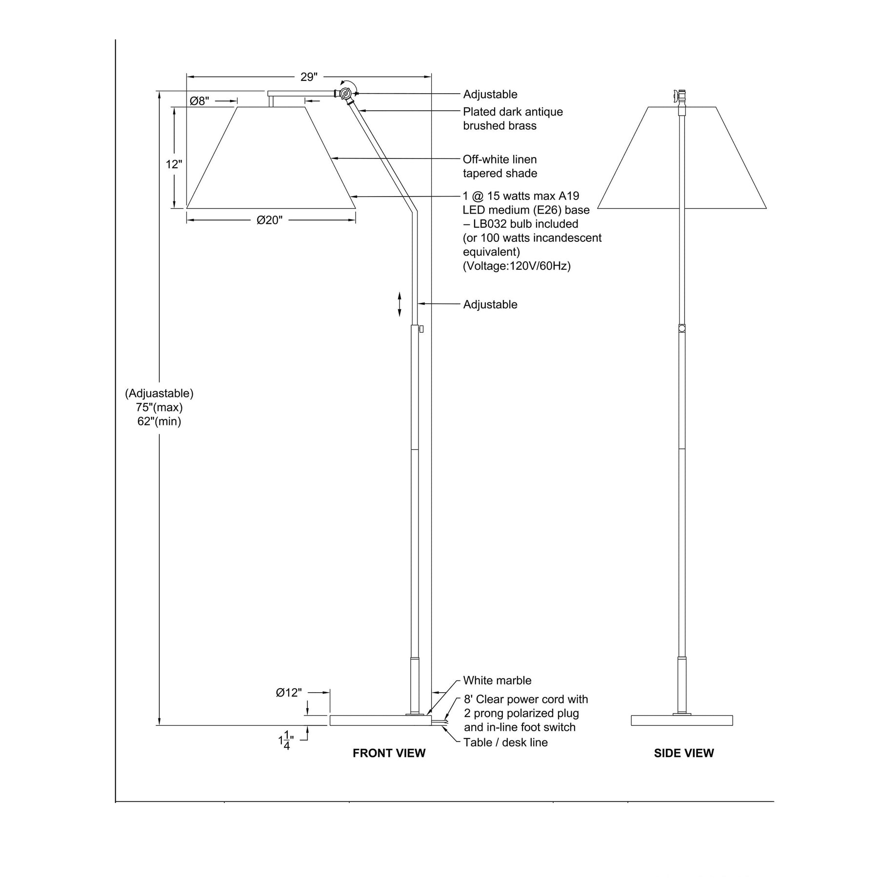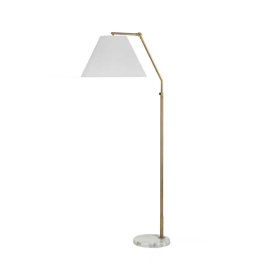 Honed white natural marble anchors this fixture, offering substantial, timeless gravitas to the silhouette. The elegant, antique brushed brass column features an articulated arm, directing focused illumination where needed for reading or accenting space.