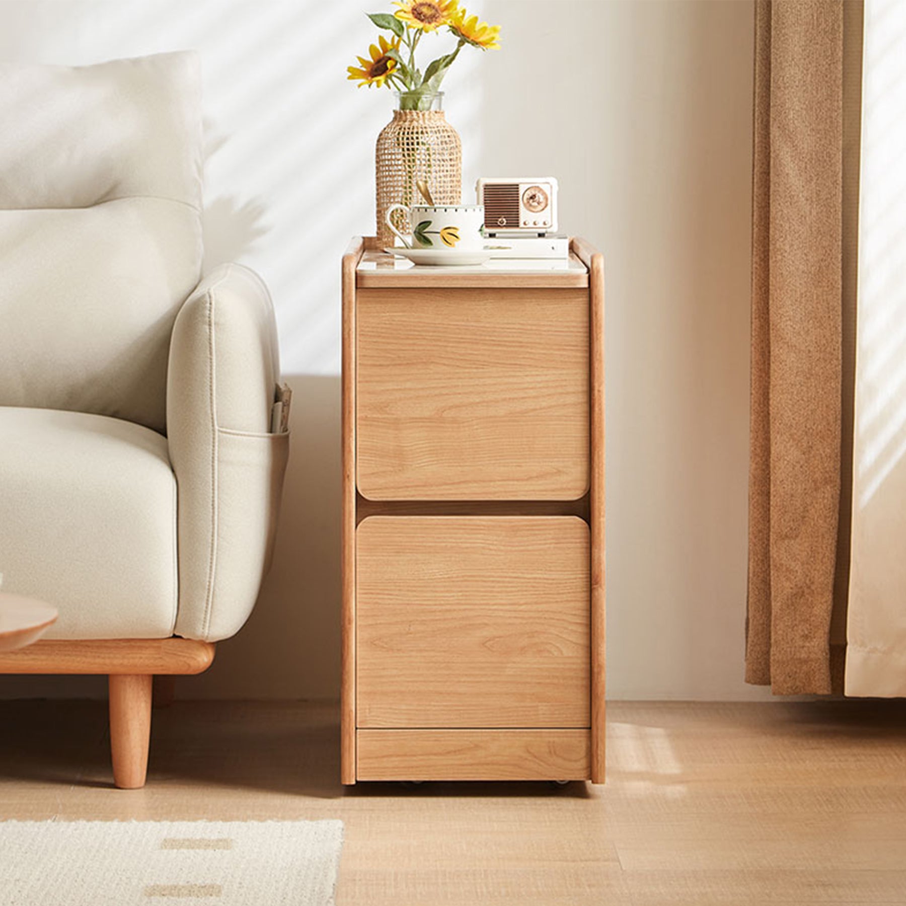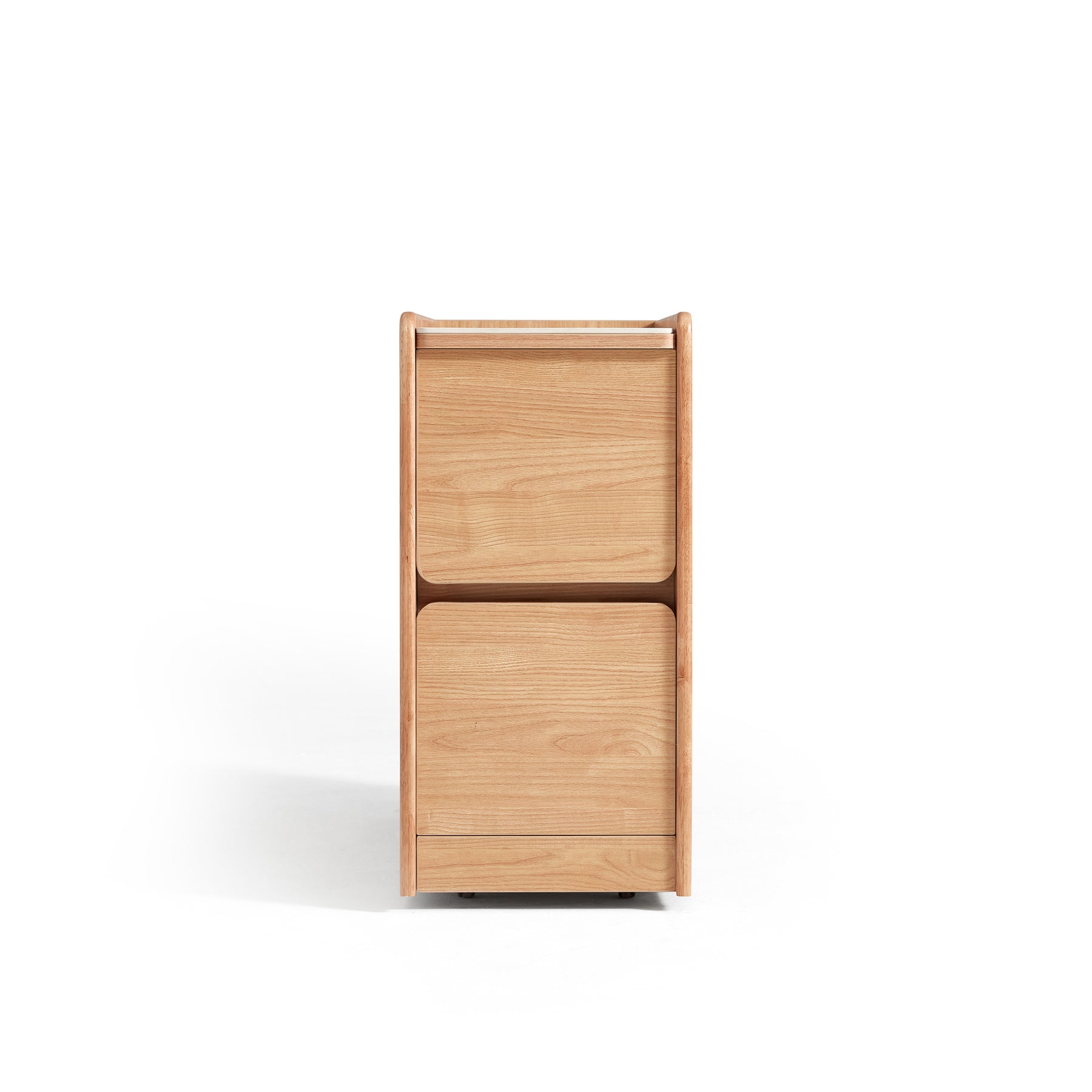 Masterfully crafted solid wood frame with removable sintered top, dustproof dual drawers and child-safe rounded corners; customizable shelves, push-to-open doors and locking swivel wheels create a serene sanctuary.