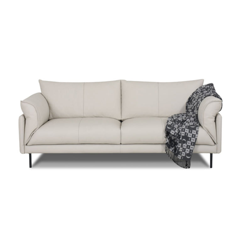 This sumptuous 2.5-seater sofa, swathed in top-grain leather, embodies timeless refinement. Its smooth silhouette and subdued hue serve as an anchor of sophistication in a minimalist or richly decorated space.