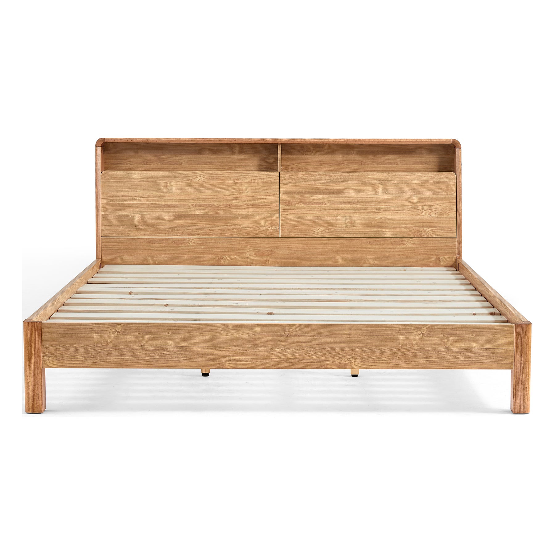 Red oak accents delivers a warm natural finish and smooth, rounded edges for a contemporary look. Solid wood slatted base provides breathable support and a stable mattress foundation while maintaining a minimalist profile.