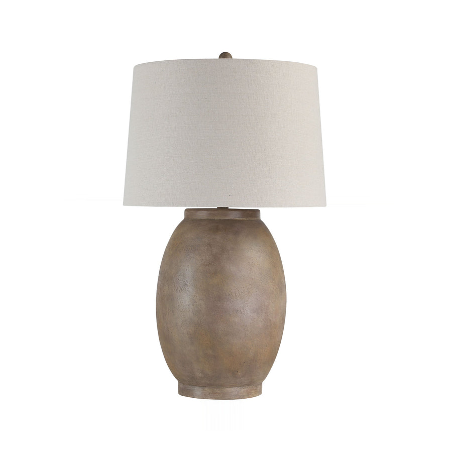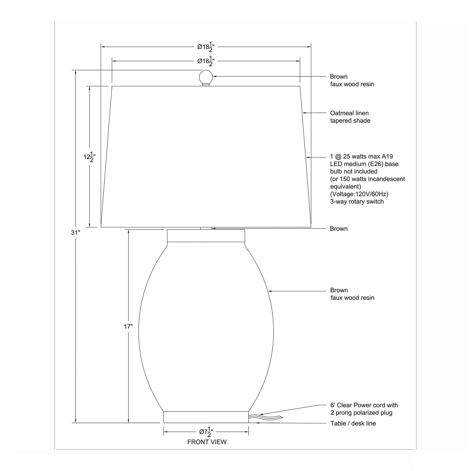 Crafted with a smooth resin base in a painted brown finish, this table lamp brings rustic charm with contemporary elegance. The natural wood-like texture and rich earthy tones pair beautifully with the soft oatmeal linen shade, creating a soothing, organic look.