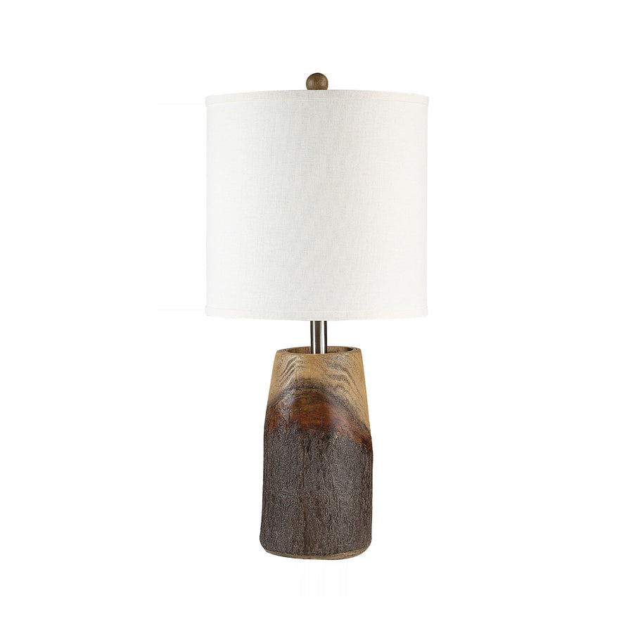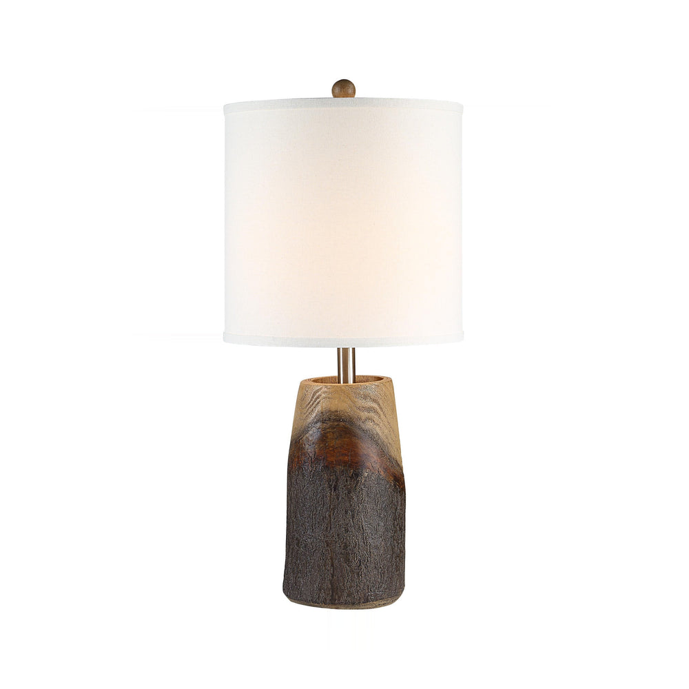 Sculptural ceramic base mimics organic tree bark and rich wood grain, grounding interiors with raw, artisanal texture. This piece introduces an earthy, sophisticated warmth, perfect for enhancing transitional or rustic modern settings.