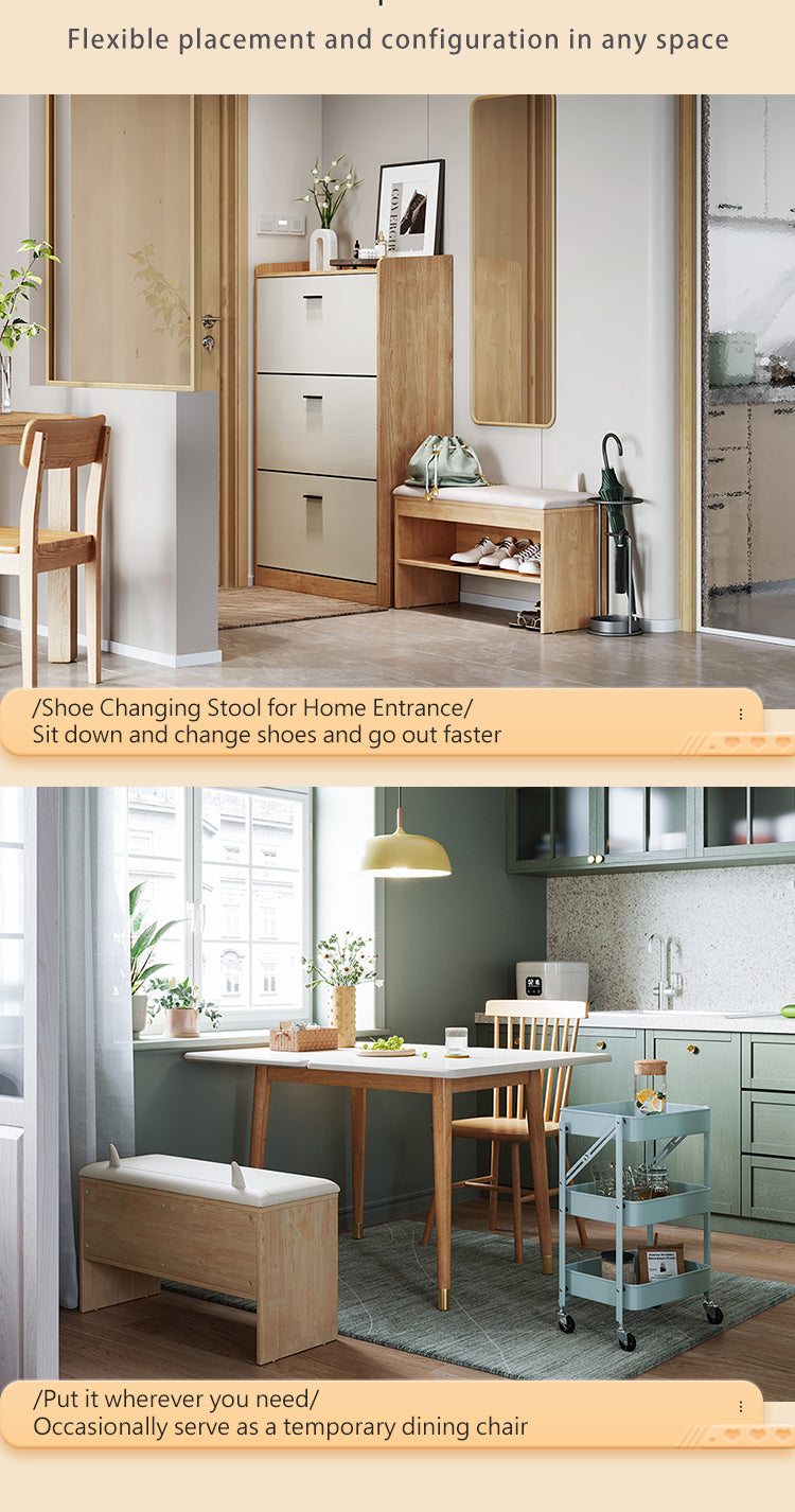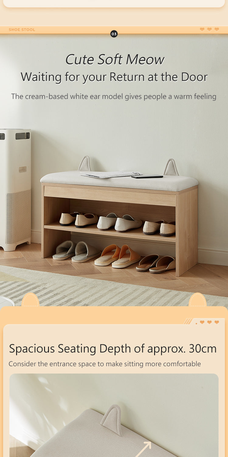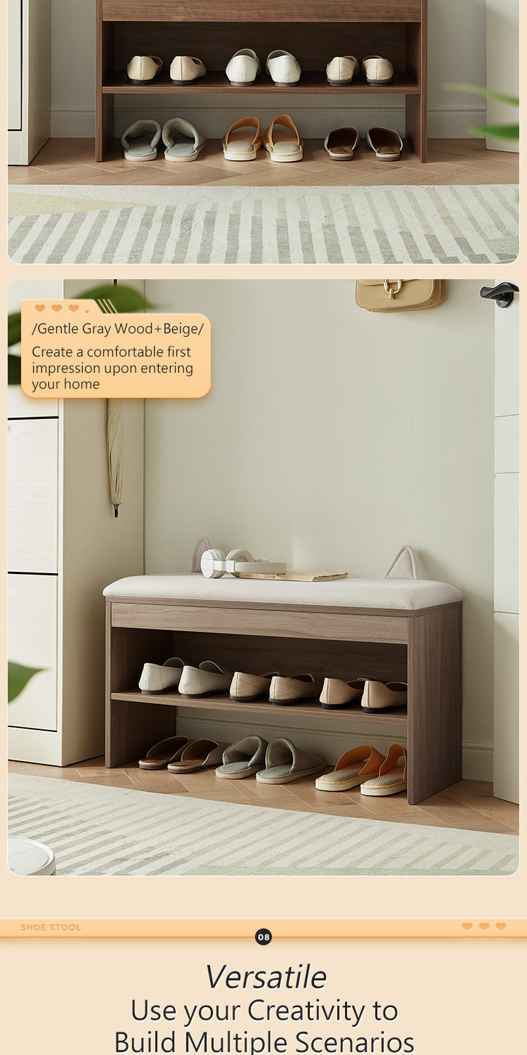 Experience the perfect fusion of functionality and style with this compact wooden shoe cabinet, a versatile solution for footwear organization. Its space-saving design efficiently manages your shoes while adding a refined touch to your decor. This exceptional shoe cabinet elevates your home ambiance with elegance, making it an ideal addition to any entryway or living area. The soft, sponge-filled cushions provide comfortable seating while attending to your footwear needs, while the hidden storage underneath offers ample room for shoes and accessories, enhancing both practicality and aesthetic appeal simultaneously.