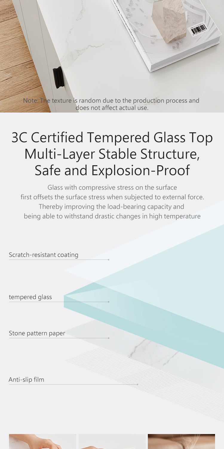 Durable Top: Tempered glass surface, resistant to scratches and easy to clean.