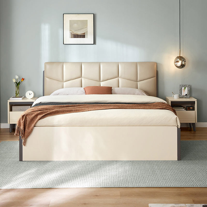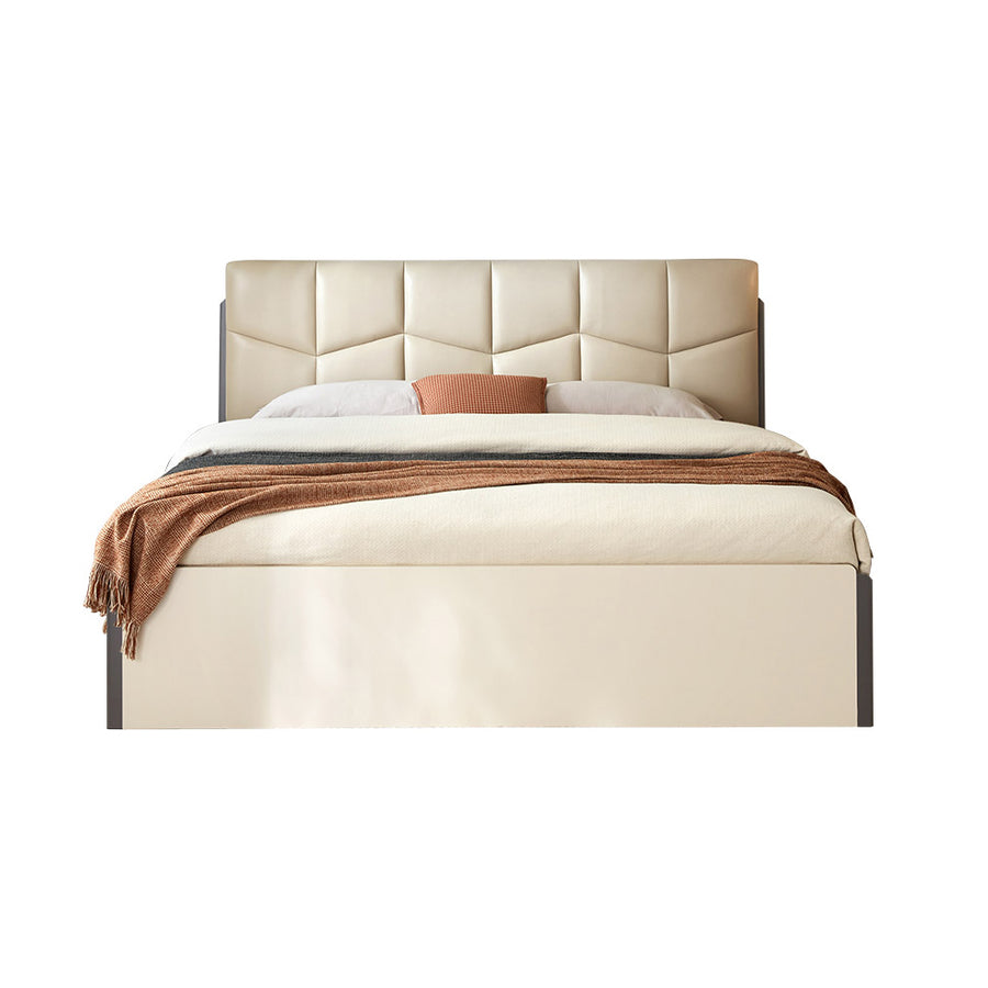 This modern storage bed combines style with practicality. Featuring a plush, upholstered headboard, it adds a touch of luxury to any bedroom. The bed offers hidden storage beneath the mattress, accessible via a hydraulic lift system, along with additional side drawers for easy organization. Perfect for keeping your bedroom clutter-free.