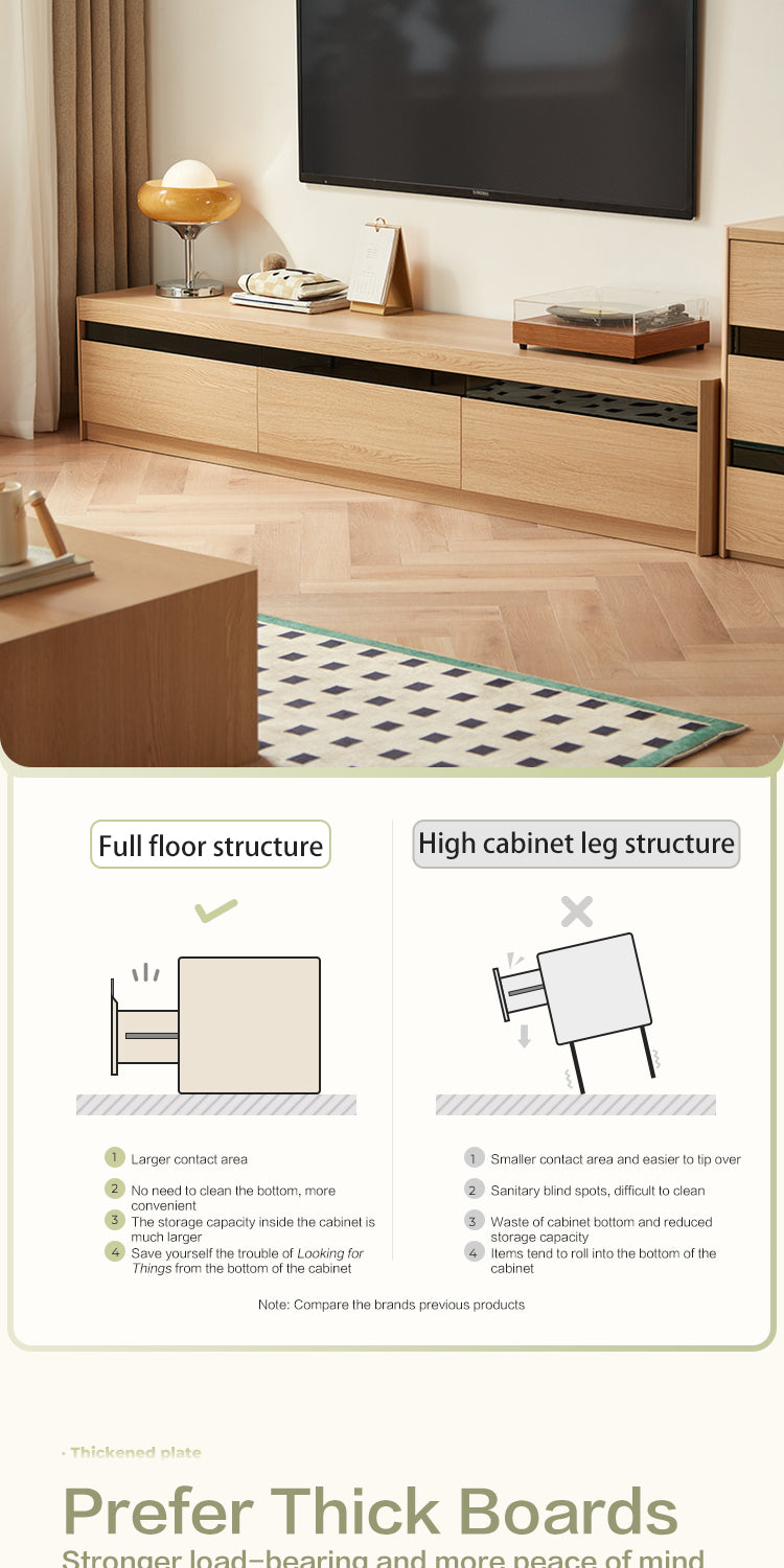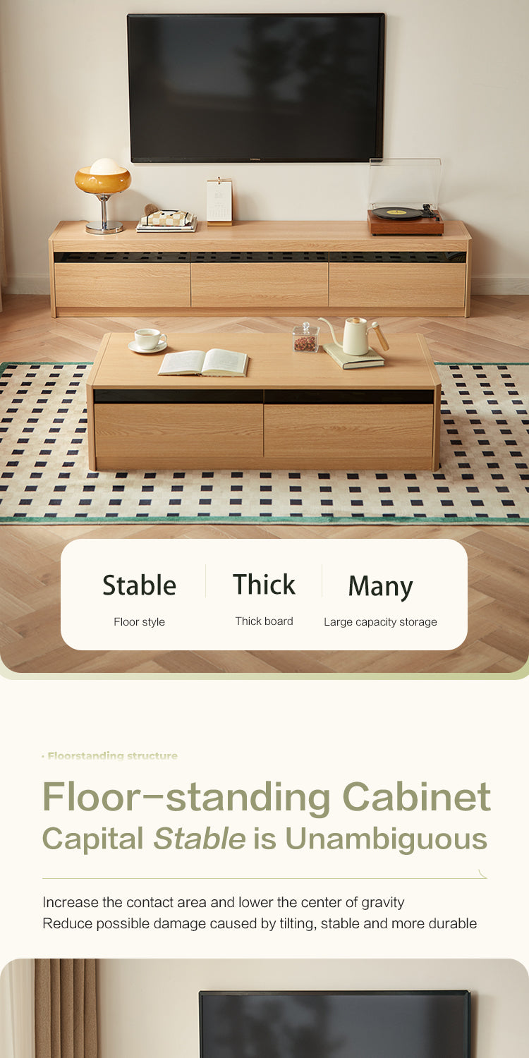 Streamline your living room with this sleek, minimalist TV stand that blends functionality with modern elegance. Crafted from high-quality wood with a light oak finish, it features a no-legs design, ensuring stability and making cleaning easier by eliminating hard-to-reach spaces. Its clean lines and understated style enhance any contemporary decor while providing ample storage for media and accessories.
