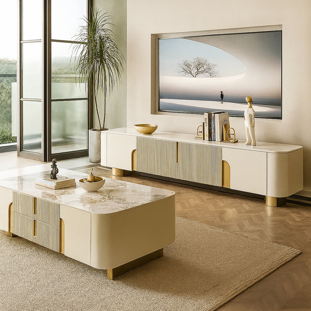 LUCERA Pandora Ceramic Coffee Table – Soft Gold Accents