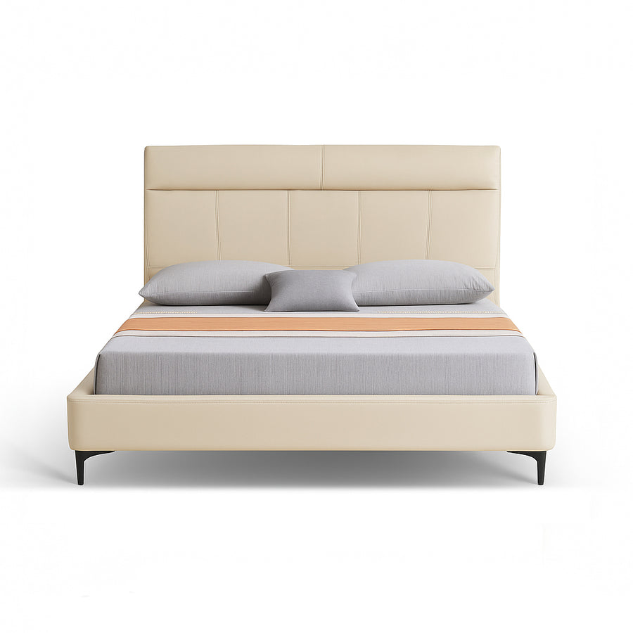 Half leather upholstery: Adds elegance and sophistication. Multi-functional bed frame: Acts as a comfortable backrest. Luxurious and soft: Provides a relaxing sleeping experience. Stylish light green color: Enhances the ambiance of your bedroom.