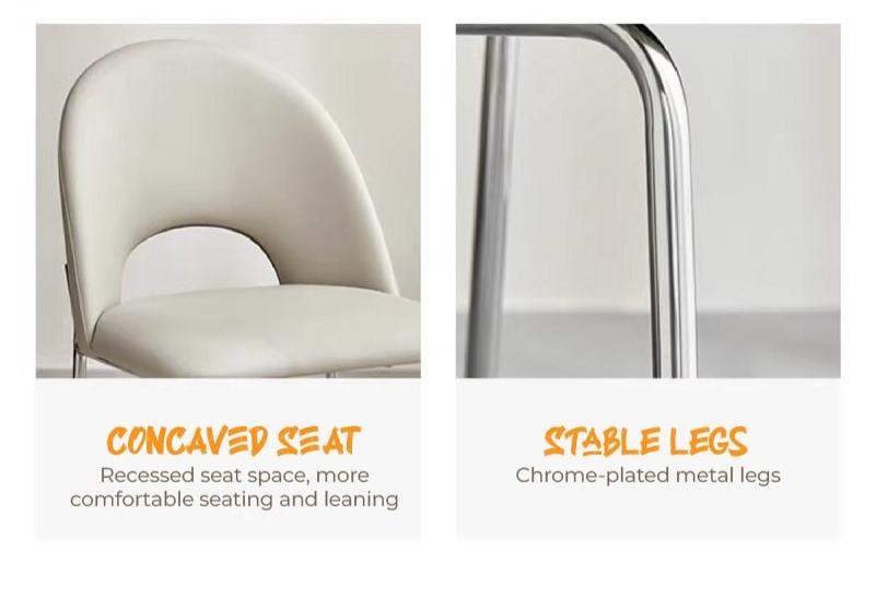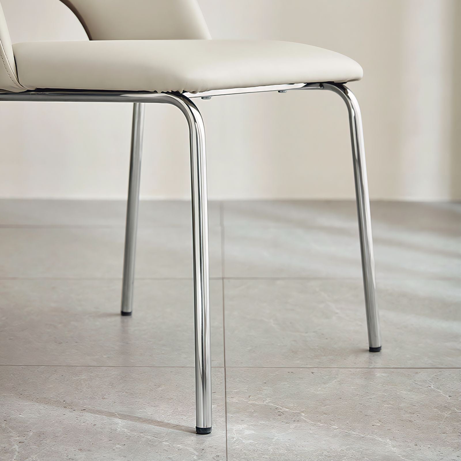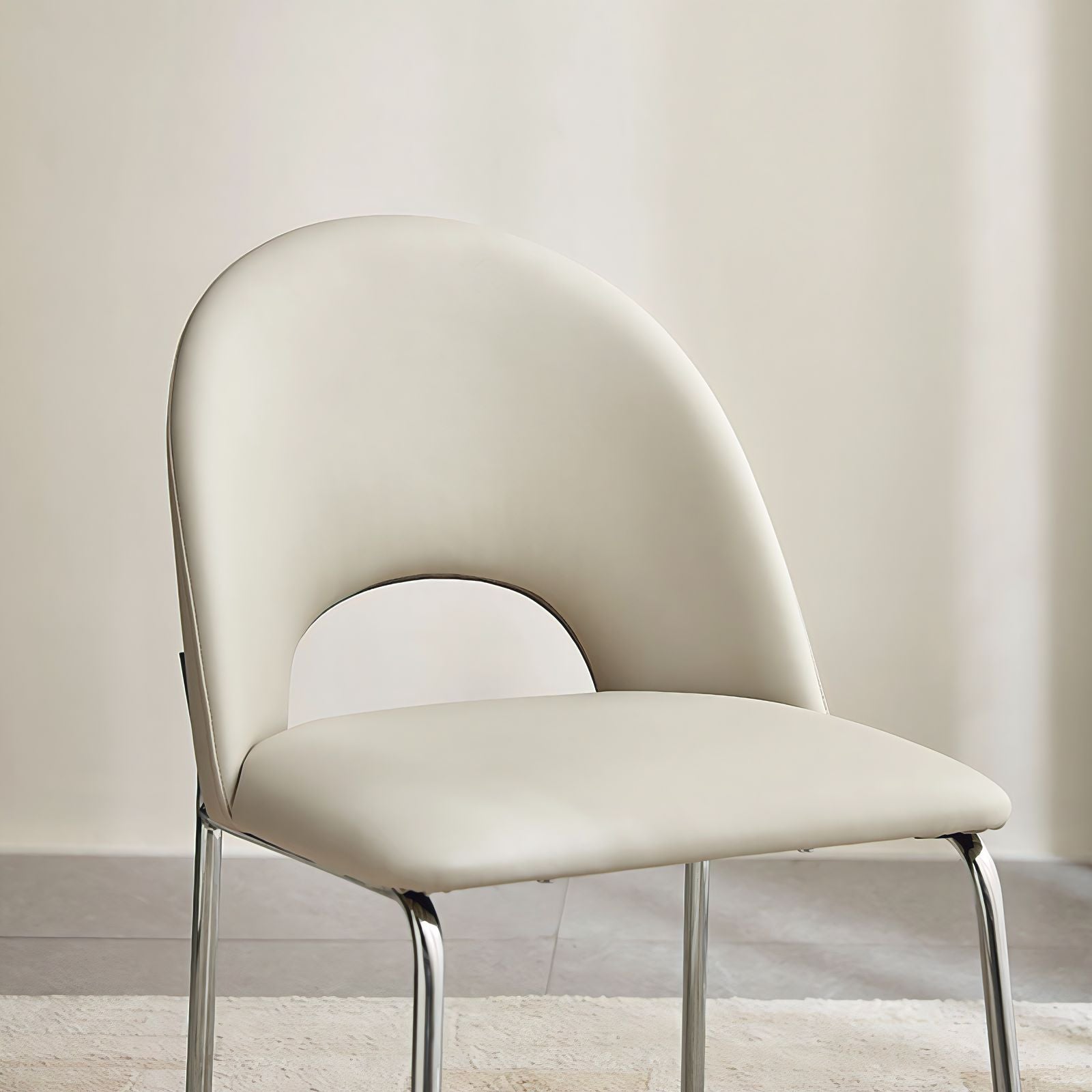 Elevate your living space with the understated elegance of this beautifully upholstered chair. The smooth, creamy texture of the durable fabric contrasts beautifully with the gleaming stainless steel legs, providing a modern twist on classic luxury furniture. Its inviting curves and open back design exude a contemporary flair, making it a perfect blend of form and function for your home.
