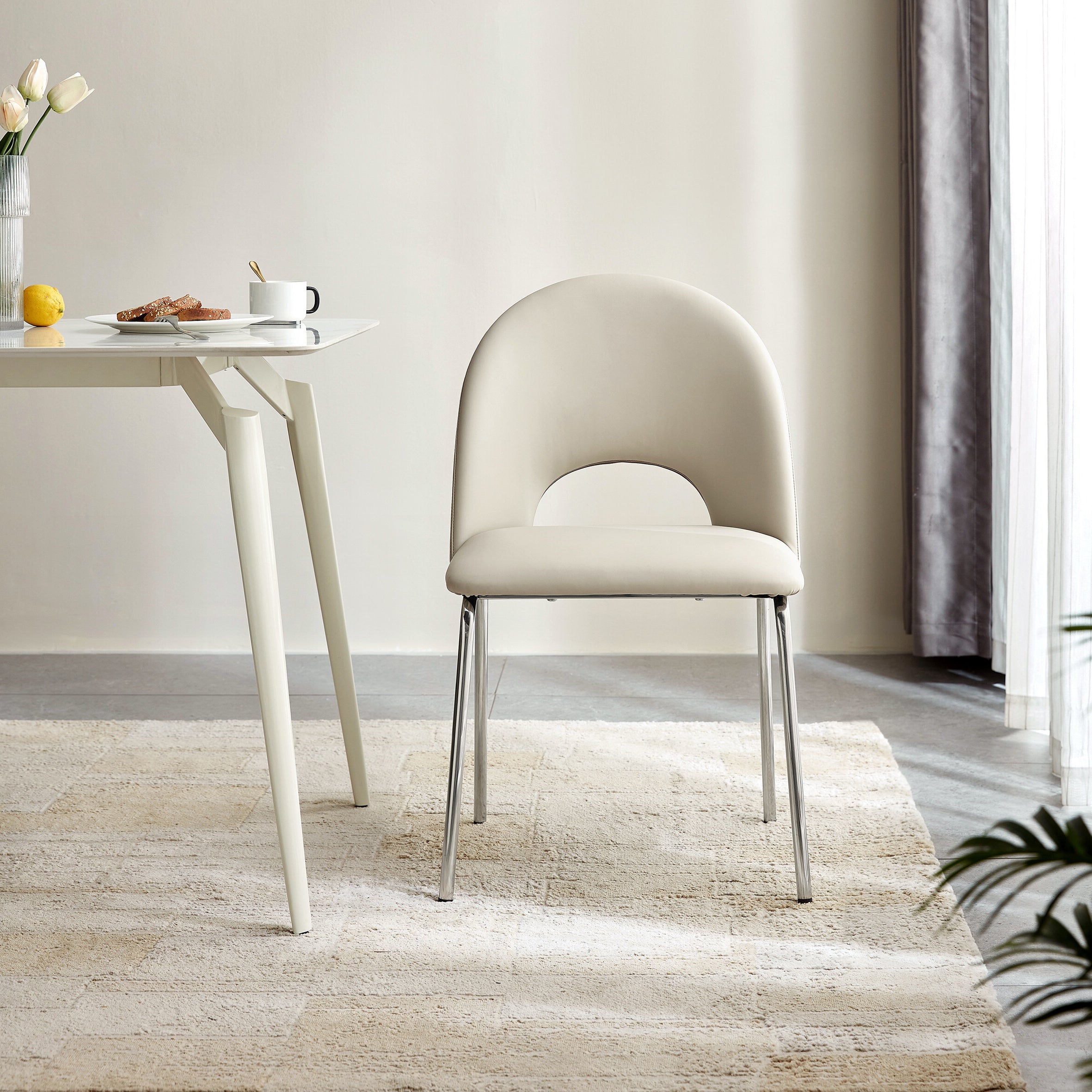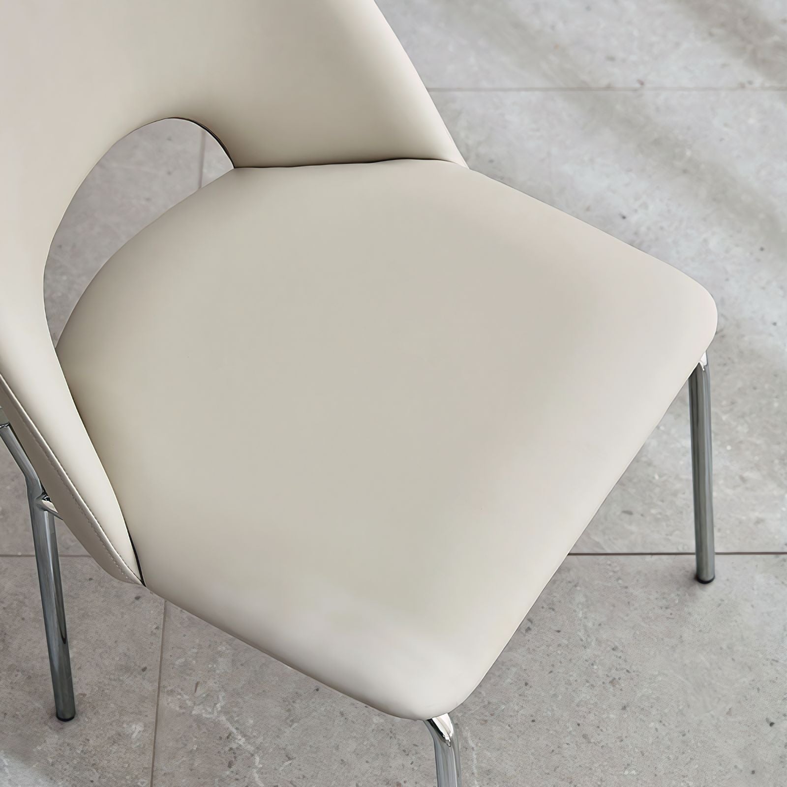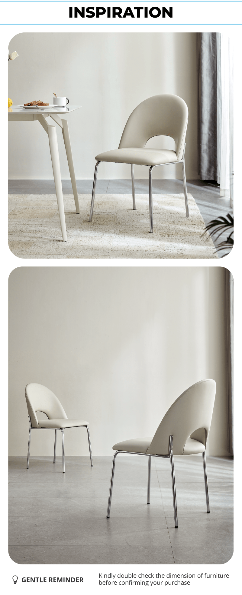 Elevate your living space with the understated elegance of this beautifully upholstered chair. The smooth, creamy texture of the durable fabric contrasts beautifully with the gleaming stainless steel legs, providing a modern twist on classic luxury furniture. Its inviting curves and open back design exude a contemporary flair, making it a perfect blend of form and function for your home.