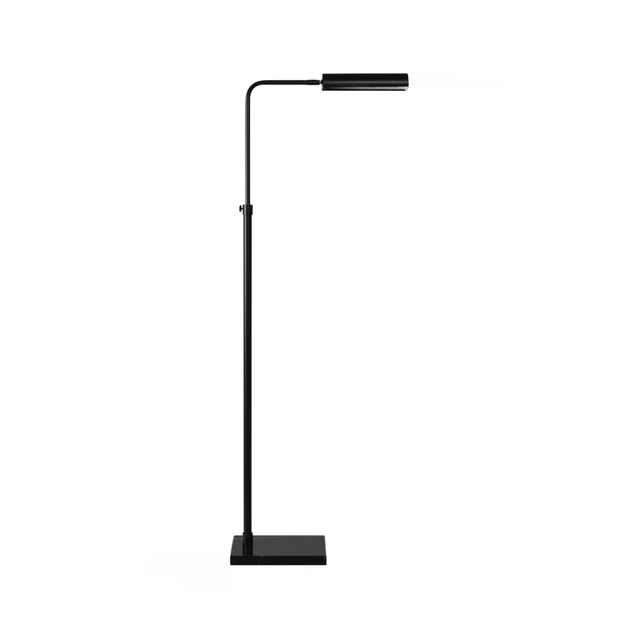 Forged from iron with a deep matte black finish, this architectural floor lamp channels sophisticated, vintage ingenuity into a modern silhouette. Its slender profile and dramatic finish provide commanding visual presence, perfect for anchoring sophisticated interiors.