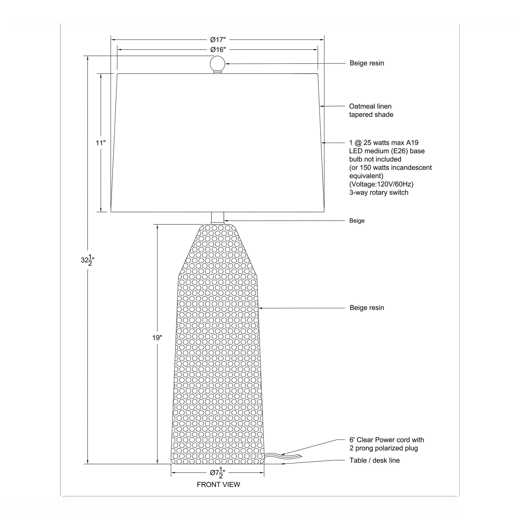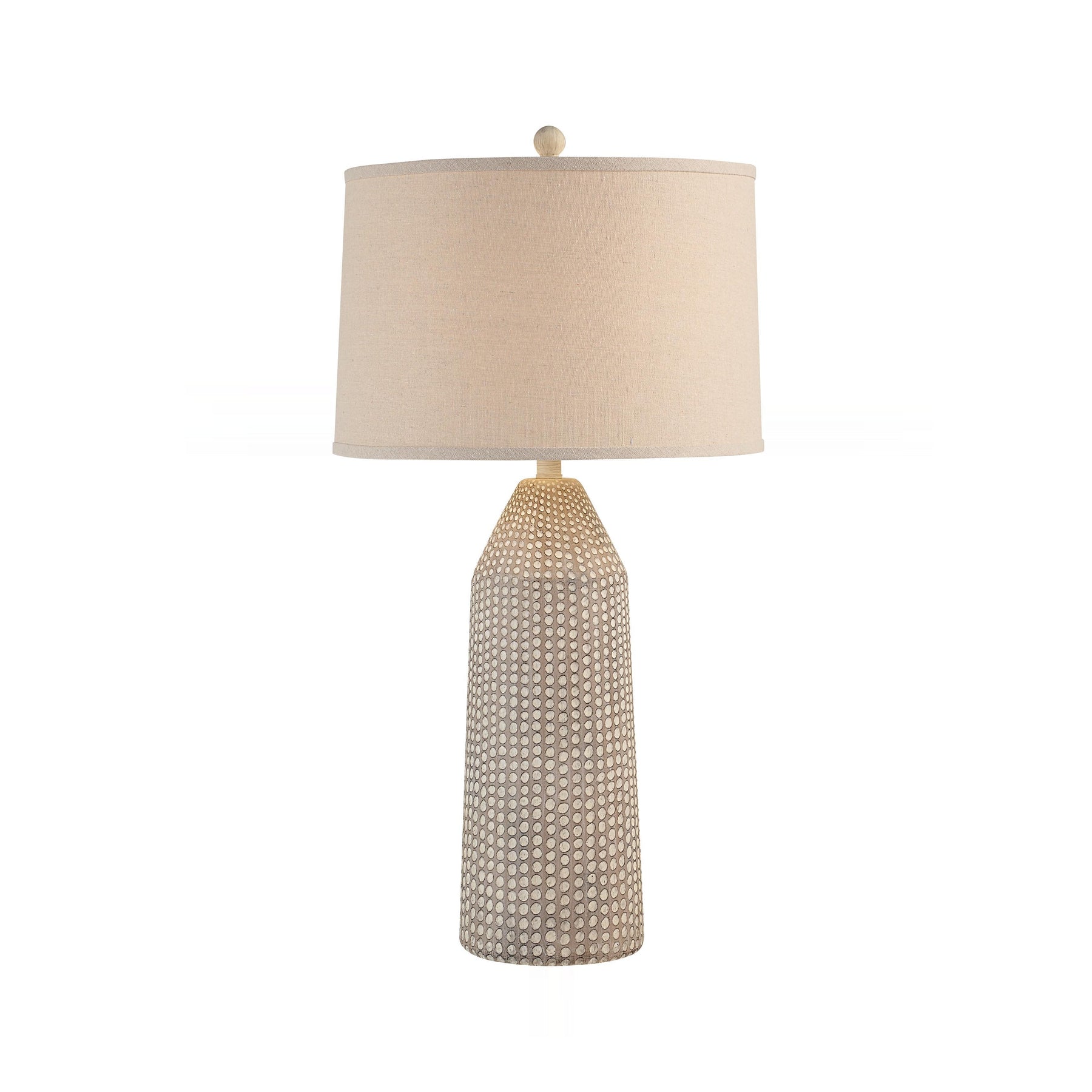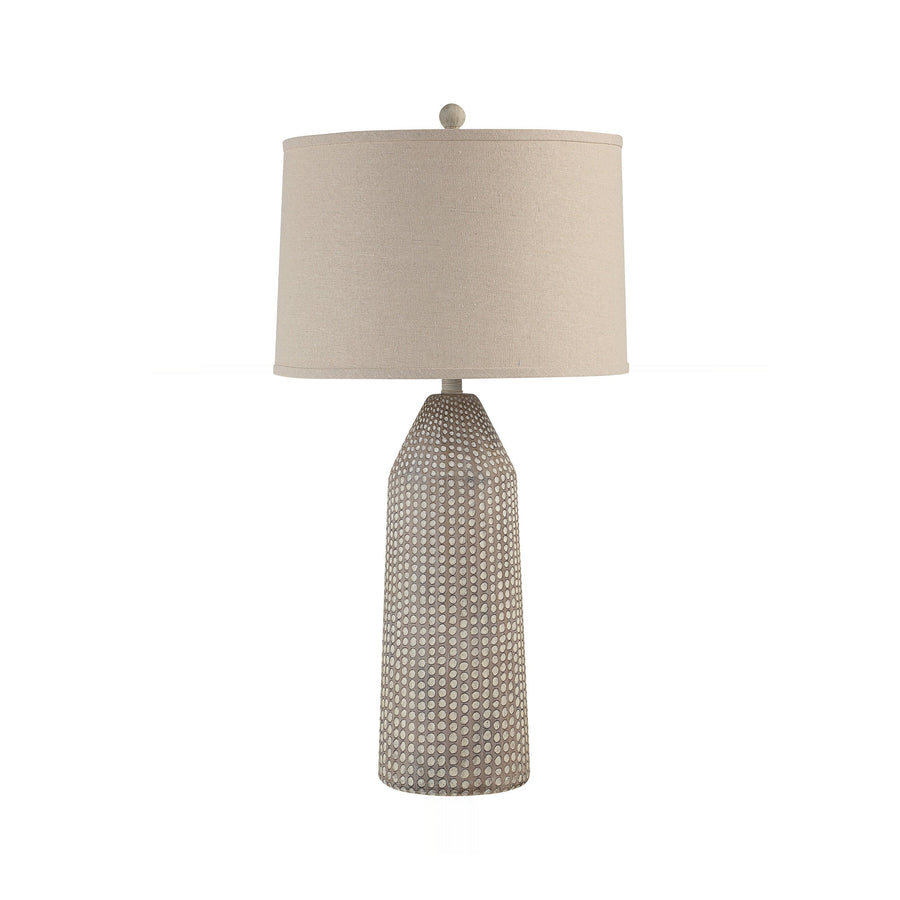 Capped by an oatmeal linen drum shade, this lamp casts a warm, diffused glow across the room. Three distinct brightness settings allow tailored illumination to enhance living areas or intimate reading nooks.