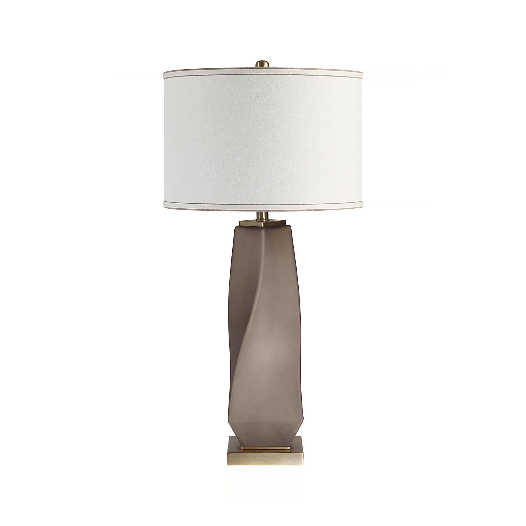 Sculptural, smoky grey glass forms a dramatically twisted silhouette, anchored by a polished antique brass base. This sophisticated pillar lends moody depth and rich texture to contemporary and traditional interiors alike.