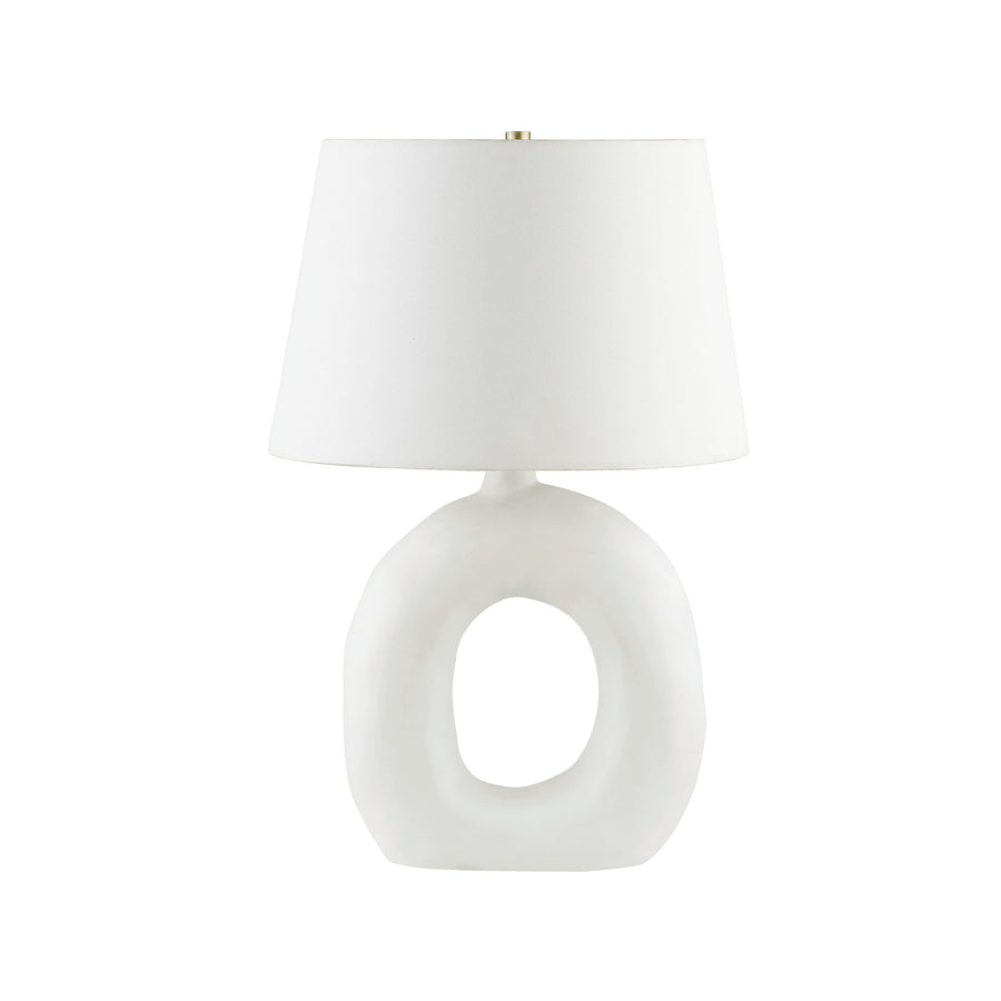 Sculptural ceramic base anchors this lighting fixture with an organically modern, freeform aperture shape, finished in a matte, chalky white tone. The substantial, curvilinear form provides dramatic visual weight ideal for designer-forward settings.