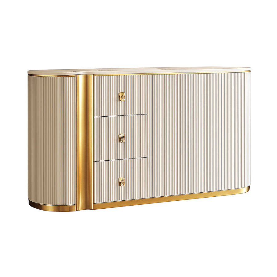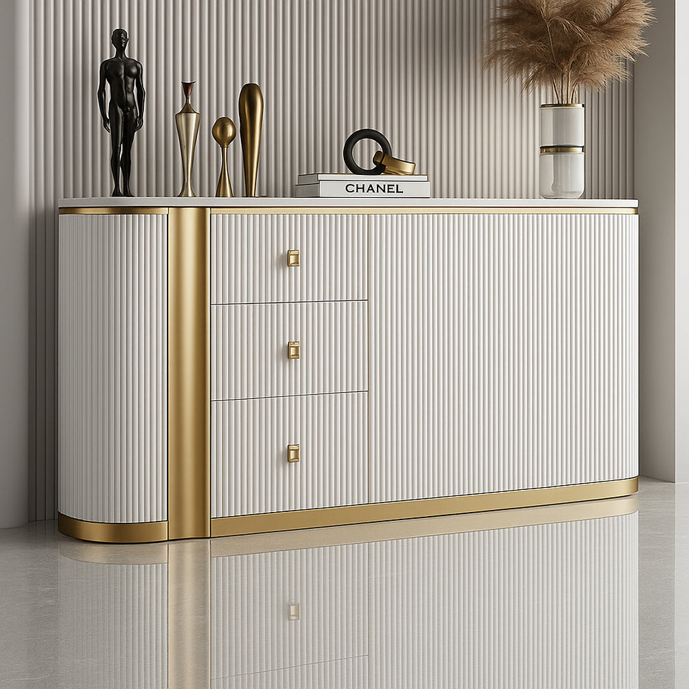 ODETTE Modern Beige & Gold Sideboard with Ceramic Top