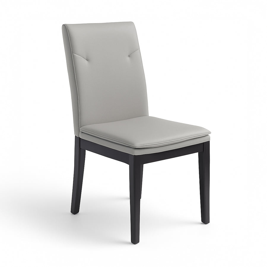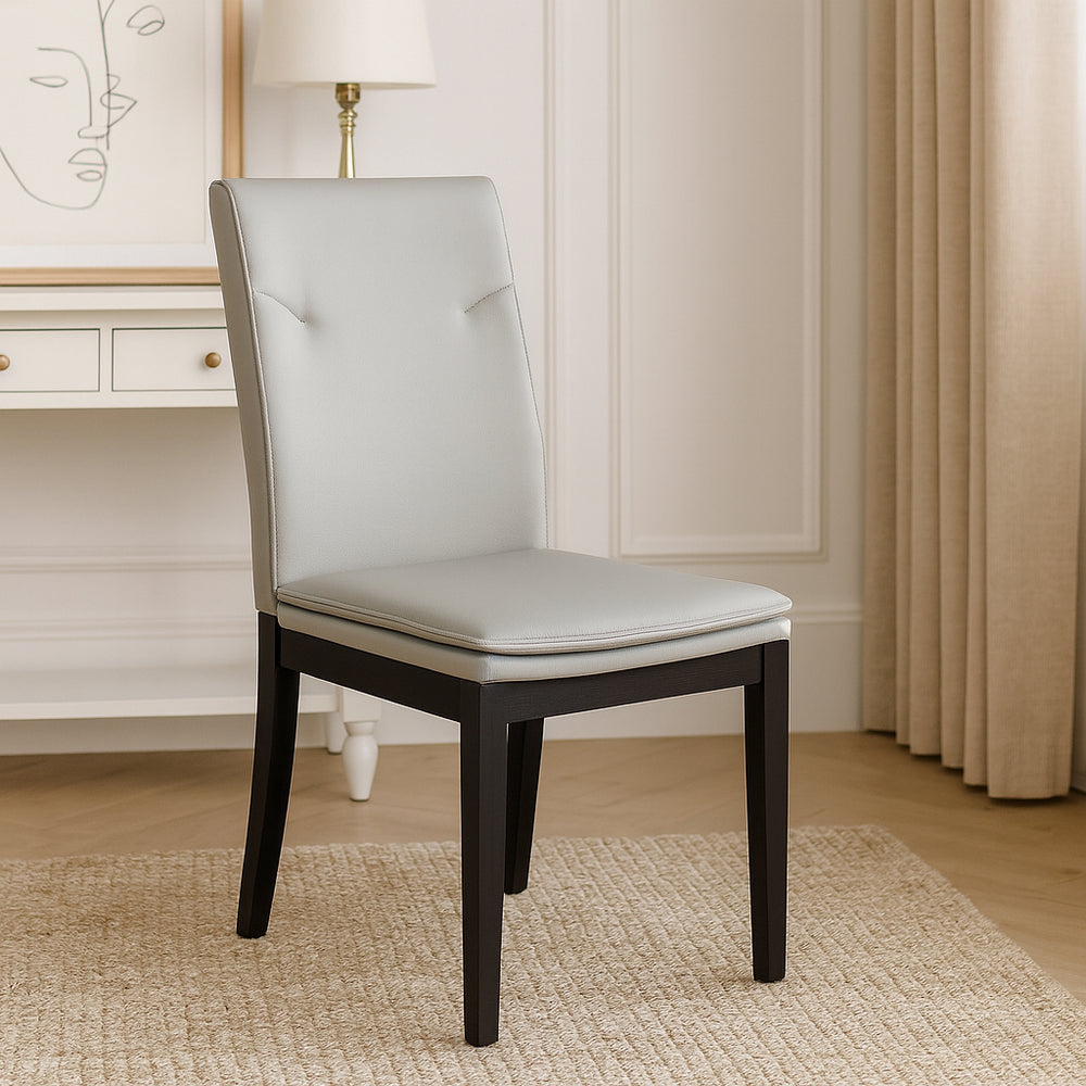 Immersing yourself in a blend of modern elegance and traditional craftsmanship, this dining chair captivates with its exquisite design. Crafted from solid walnut, its sturdy frame strikes a harmonious balance with the premium eco-leather upholstery. The stitched cushion top not only enhances visual appeal but beckons you to luxuriate in its comfortable embrace, making meals a delightful experience.