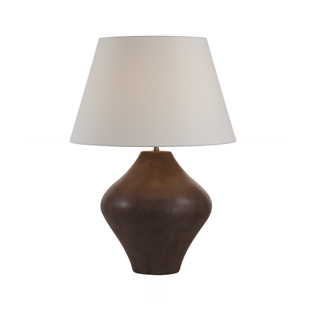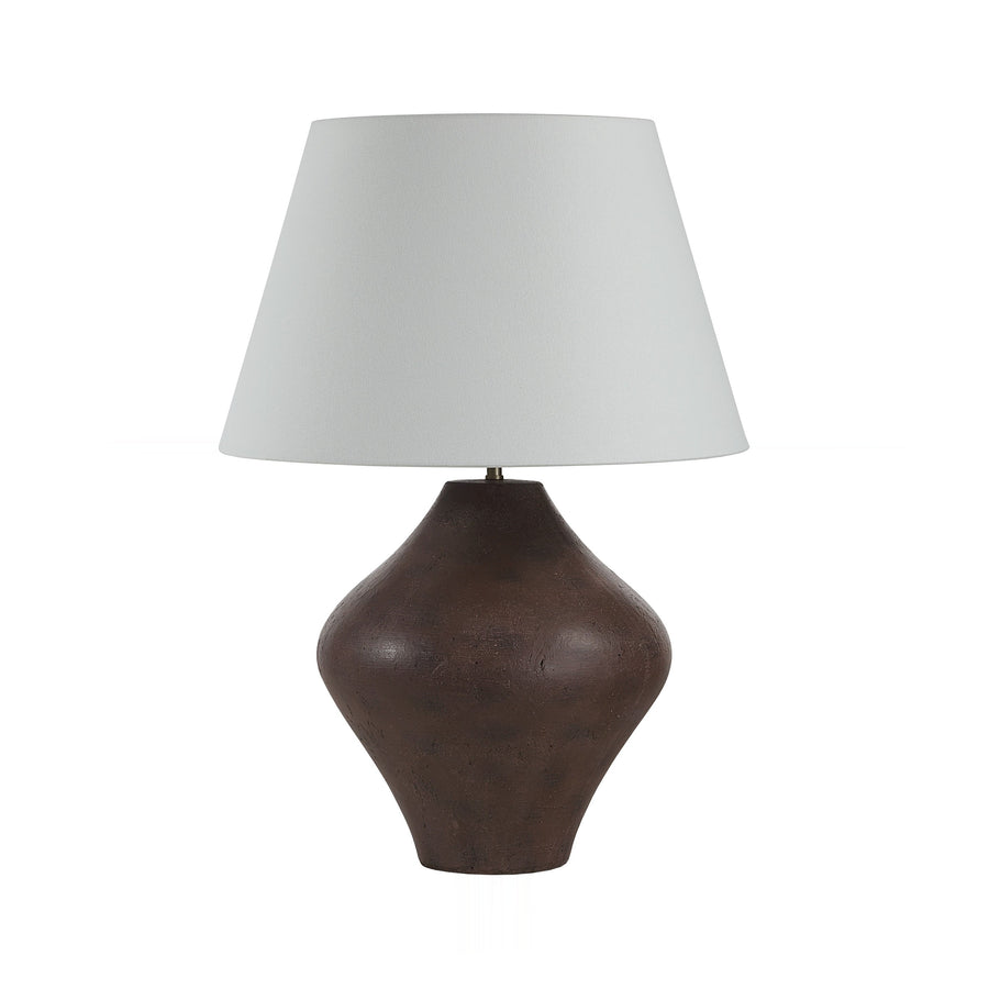 Sculptural brown ceramic anchors this oversized fixture, commanding attention with its organically curved silhouette and substantial height. The earthy texture provides deep grounding, ideal for anchoring substantial consoles or credenzas in contemporary settings.