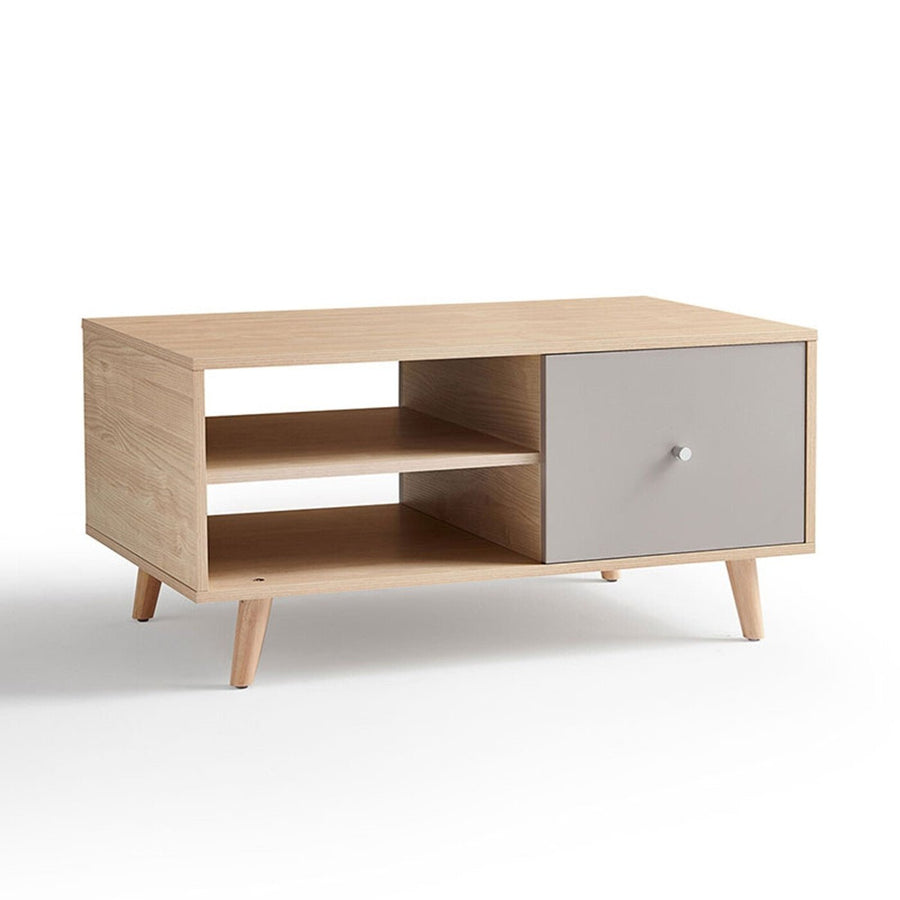 Embrace modern simplicity with this elegantly designed coffee table, combining sleek aesthetics with practical storage solutions. Crafted from high-quality wood, its light finish complements any contemporary interior, offering a warm, natural touch. The spacious tabletop provides ample space for decor, books, or a casual meal, while the open shelving and drawer system ensure all your essentials are neatly tucked away, keeping your living area clutter-free.