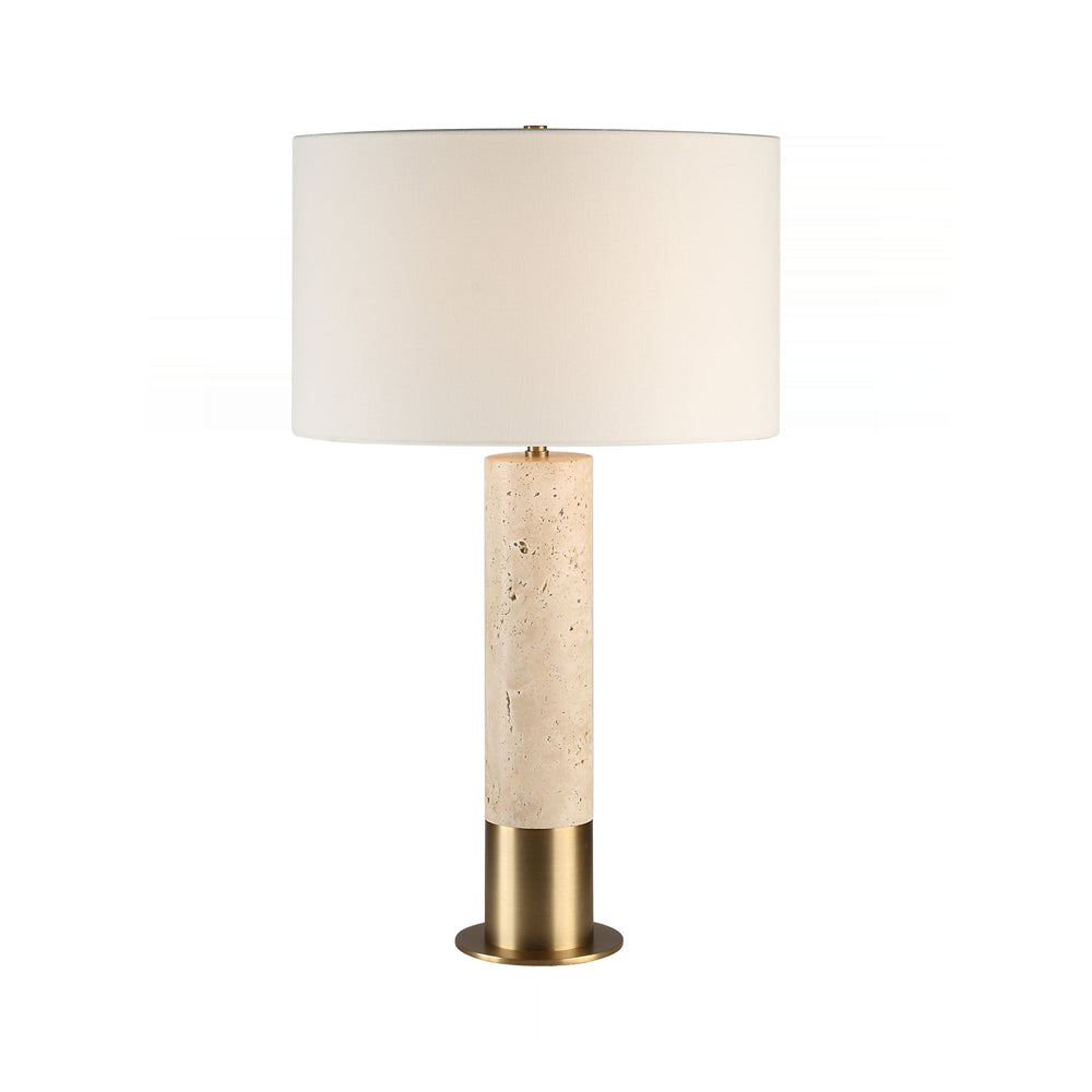 Natural travertine forms a substantial cylindrical column, grounded by a sleek antique brushed brass base for sophisticated contrast. This striking juxtaposition of earthy texture and polished metal creates immediate visual presence in any refined setting.