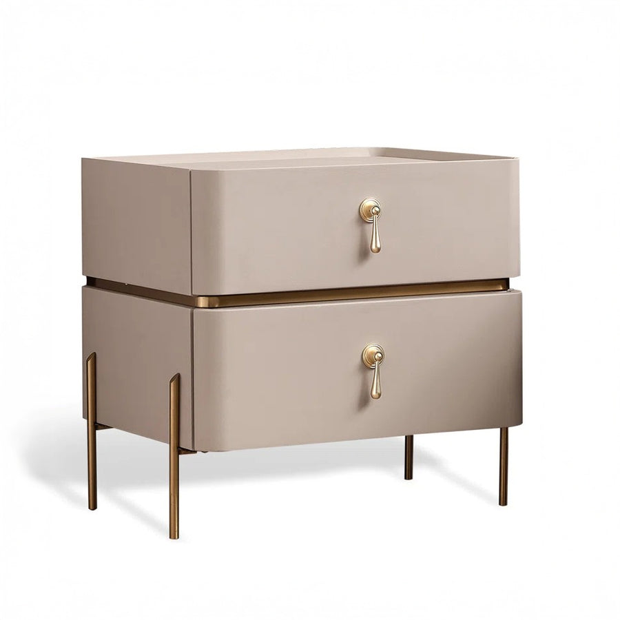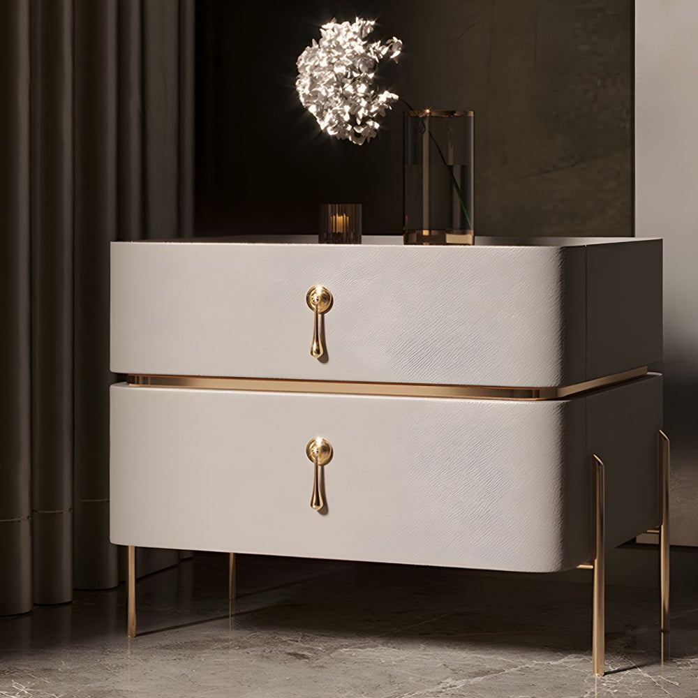 Elevate your bedroom with this sleek, contemporary white and gold nightstand. Featuring two spacious drawers with a soft-close mechanism, it offers ample storage for your essentials while maintaining a minimalist look. The textured white finish is elegantly accented with gold-toned hardware and sturdy metal legs, creating a luxurious vibe. A marble-inspired top adds a touch of sophistication, making this piece a functional yet stylish addition to any modern bedroom decor.