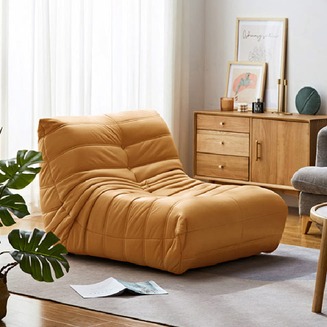 Upgrade your living space with this modern tech cloth accent chair, designed for supreme comfort and style. Upholstered in premium Peru orange fabric, this chair adds a warm and inviting feel to any room. Its ergonomic, low-profile design offers a plush and supportive seat, making it the perfect addition to a lounge, reading nook, or children's play area. The quilted texture and soft cushioning ensure a cozy experience, while its durable materials make it a long-lasting choice for contemporary homes.