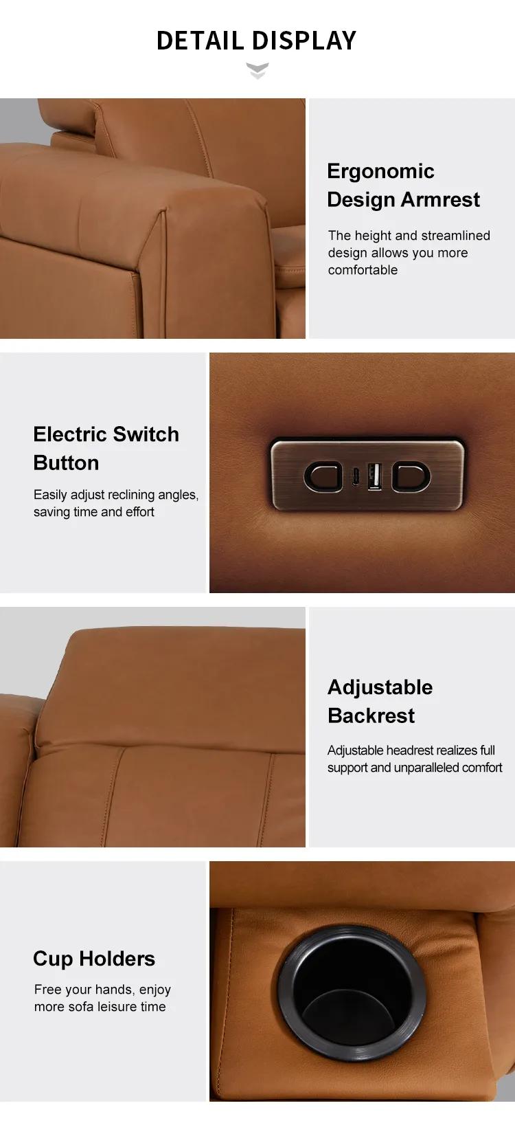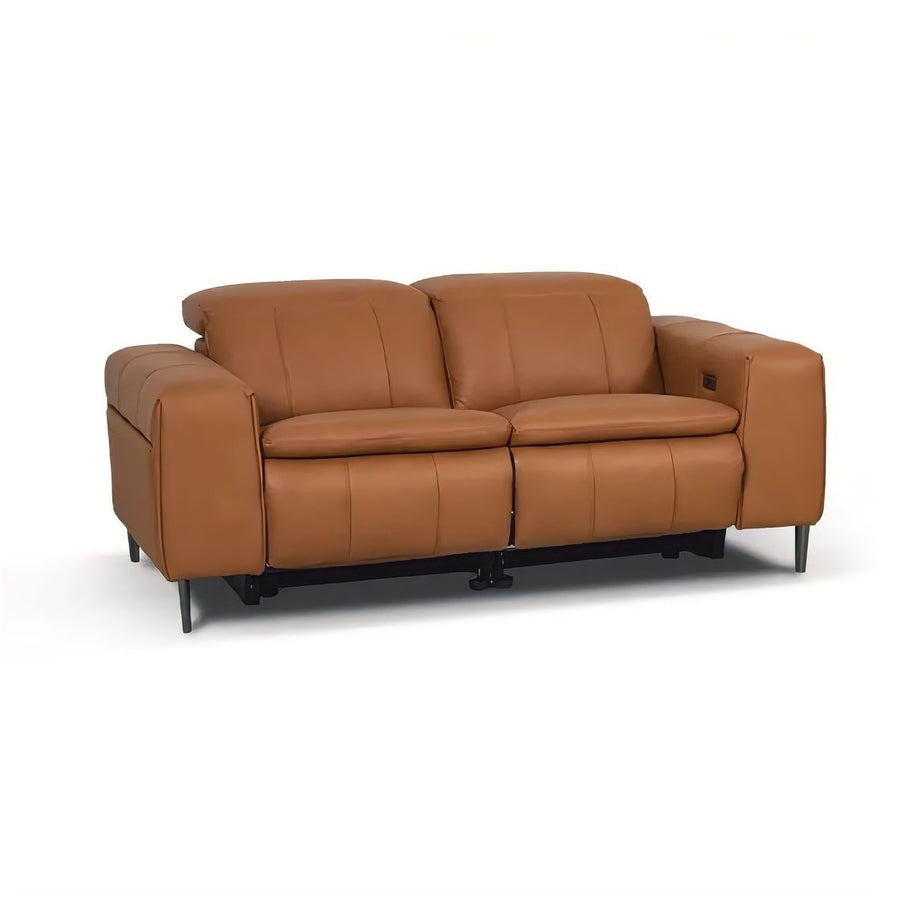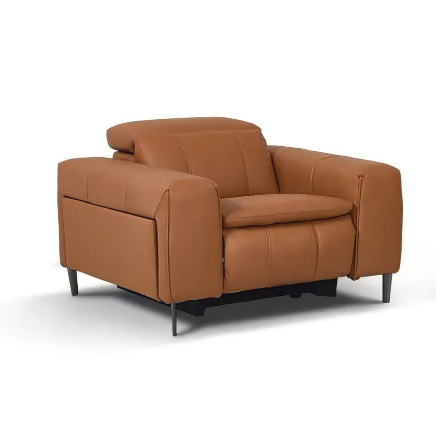 Available in both one-seater and three-seater versions. Its rich, caramel-hued leather provides a sophisticated and inviting aesthetic, making it a stylish addition to any living space. The built-in cup holder keeps your beverages within reach, enhancing convenience during movie nights or casual relaxation.