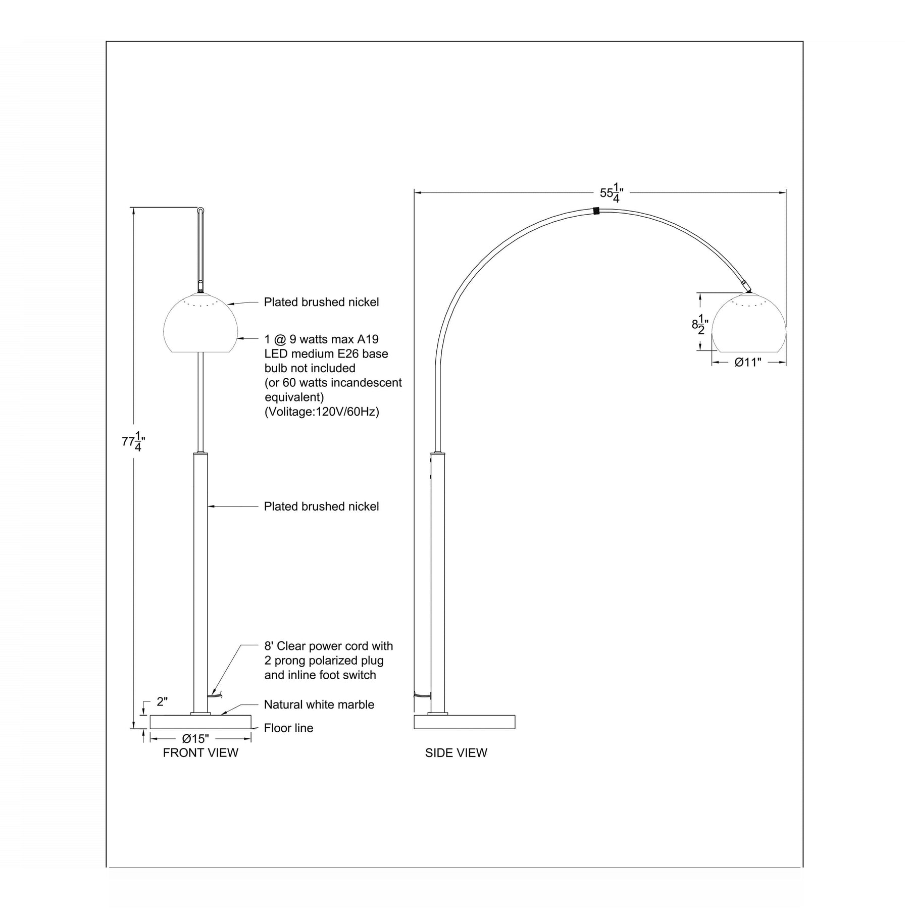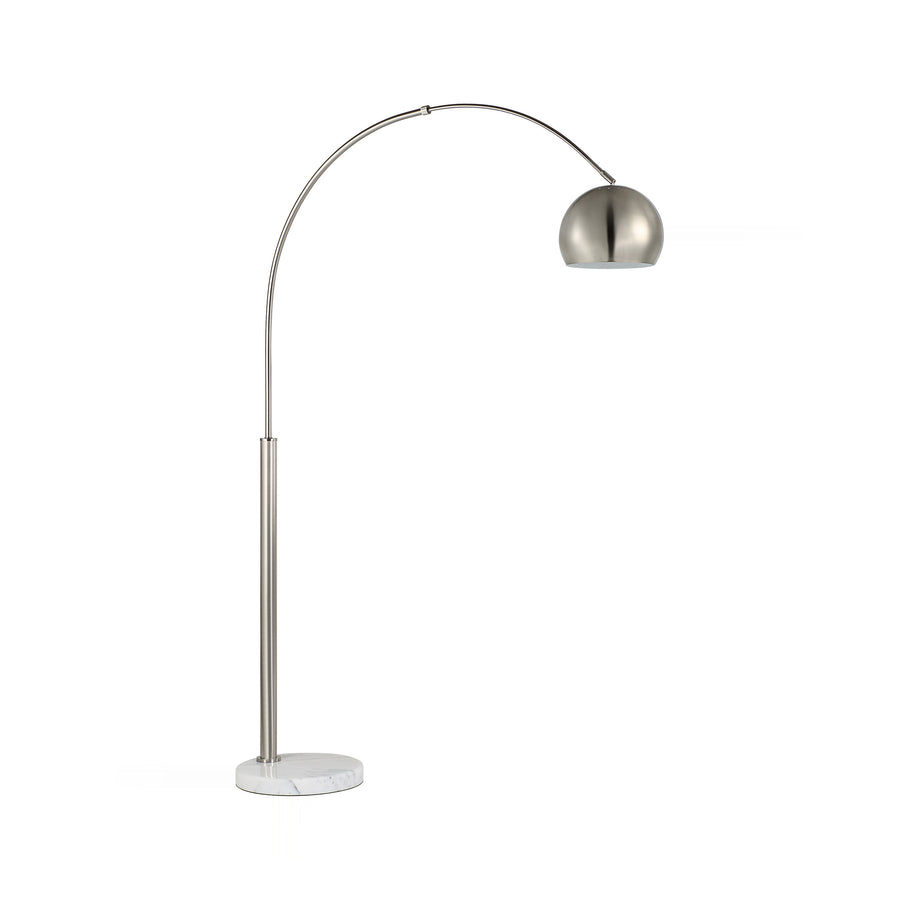 Curvaceous iron arm sweeps elegantly from a weighted marble base, culminating in a sleek, spherical metal shade for architectural impact. This iconic arc lamp delivers focused illumination, blending sculptural form with premium, contrasting materials for a modern centerpiece.