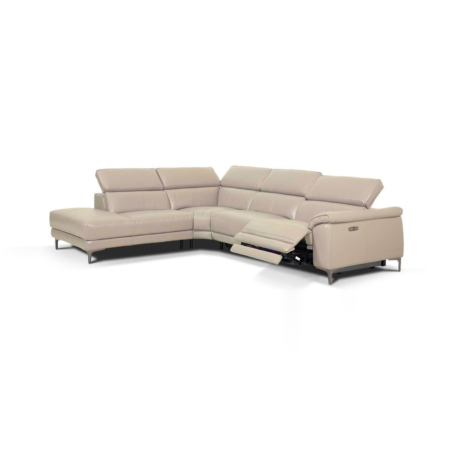 This 121-inch wide modular sectional sofa redefines modern comfort with its luxurious power recliners. Upholstered in a sophisticated light beige, it features sleek lines and elegant tapered legs, seamlessly blending into contemporary living spaces.