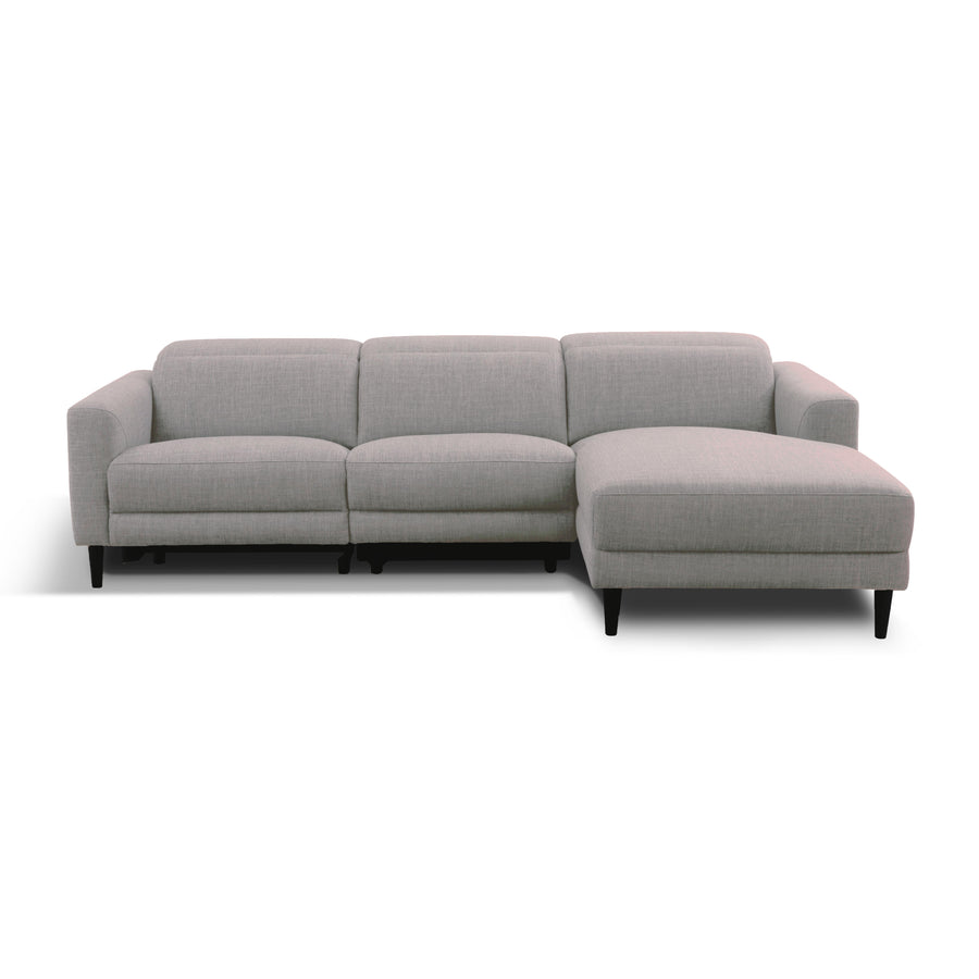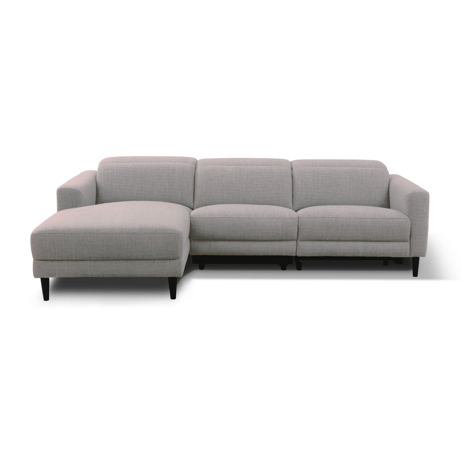 Enveloped in a serene tapestry of slate-hued upholstery, this fabric sectional merges the art of subtlety with the comfort of ingenuity. The adjustable headboard and meticulous tailoring are harmoniously integrated, crafting a centerpiece that stands as a paragon of contemporary furnishing.