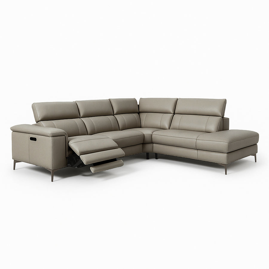 VALERIO Taupe Leather Power Reclining Sectional Sofa