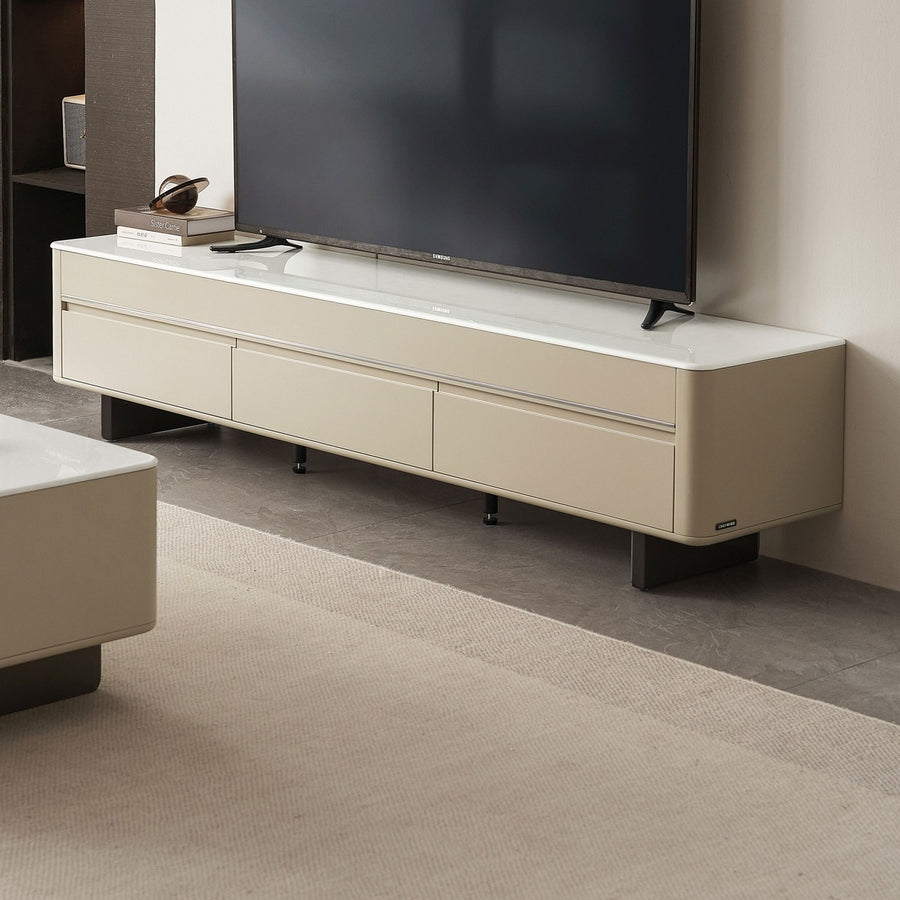 VEYRON Modern Pearl White TV Stand with 3 Drawers