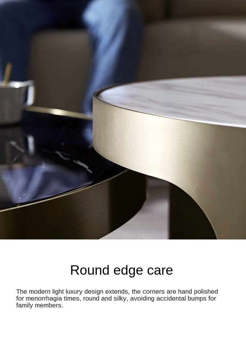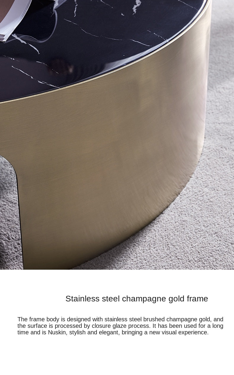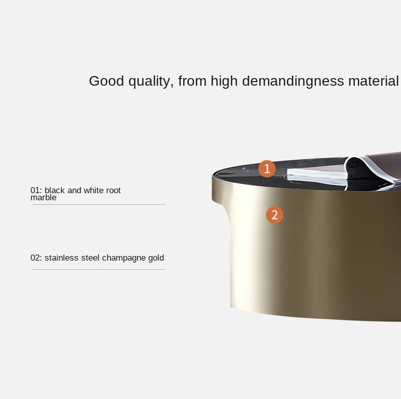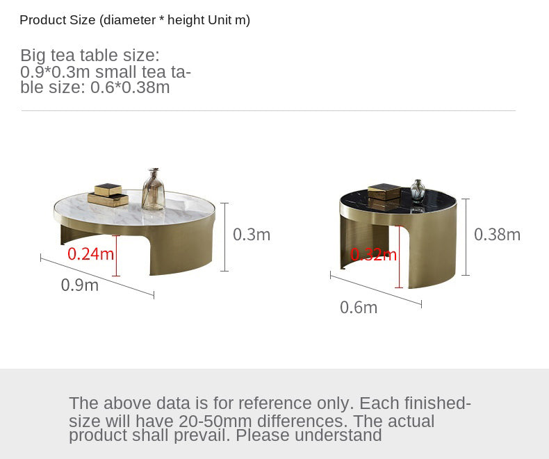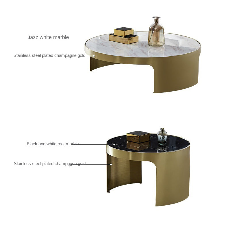 Immerse yourself in luxury with our exquisite Ceramic coffee table set, a fusion of elegance and practicality. Crafted to adorn any contemporary setting, this set features two lustrous ceramic table tops atop brushed gold color bases, exuding opulence and charm in every detail. The smooth surfaces not only captivate the eye but also offer effortless maintenance, while ceramic's robust nature guarantees longevity. Experience sophistication effortlessly merging with functionality with this sleek coffee table set, an ideal choice for style-savvy homes.