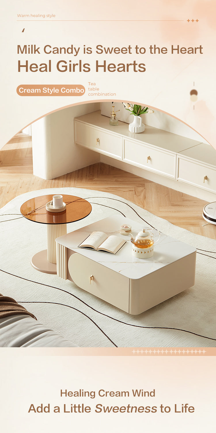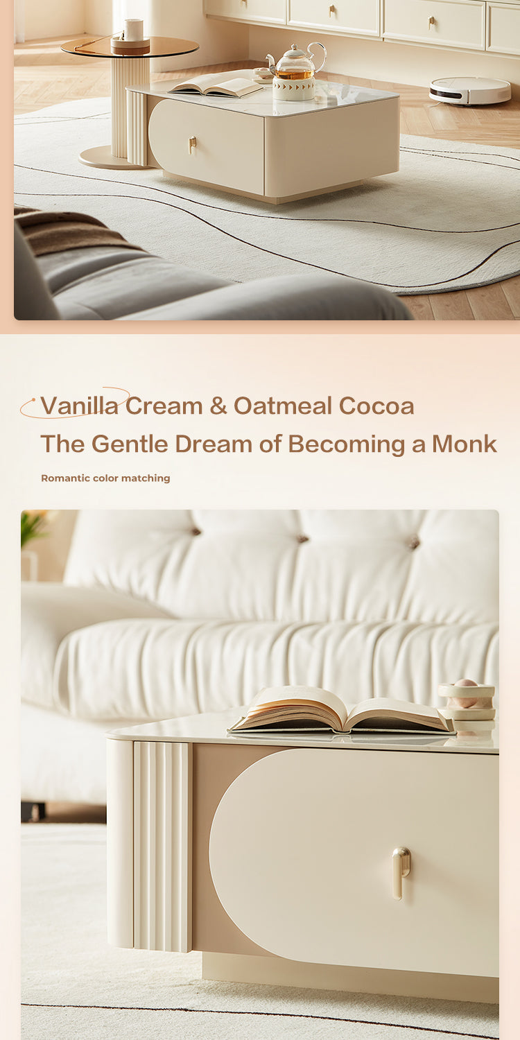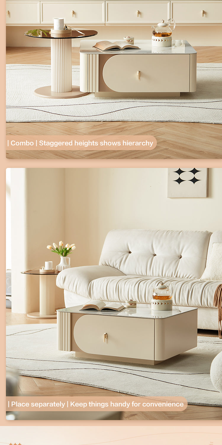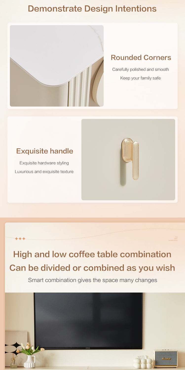 Elevate your living space with this chic and child-friendly coffee table, designed with both aesthetics and safety in mind. The sintered stone top is not only a nod to modern design but also offers a resilient surface that resists stains, scratches, and heat. Its rounded corners are purposefully crafted to create a safer environment for active children, blending seamlessly into a family-oriented home.