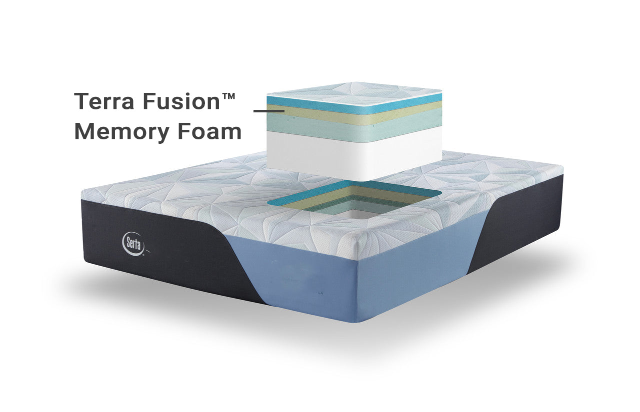 Soothing support with memory foam made from 30% plant-based materials. Terra Fusion™ offers exceptional pressure relief and minimizes motion transfer, ensuring peaceful, uninterrupted sleep while being kinder to the planet.