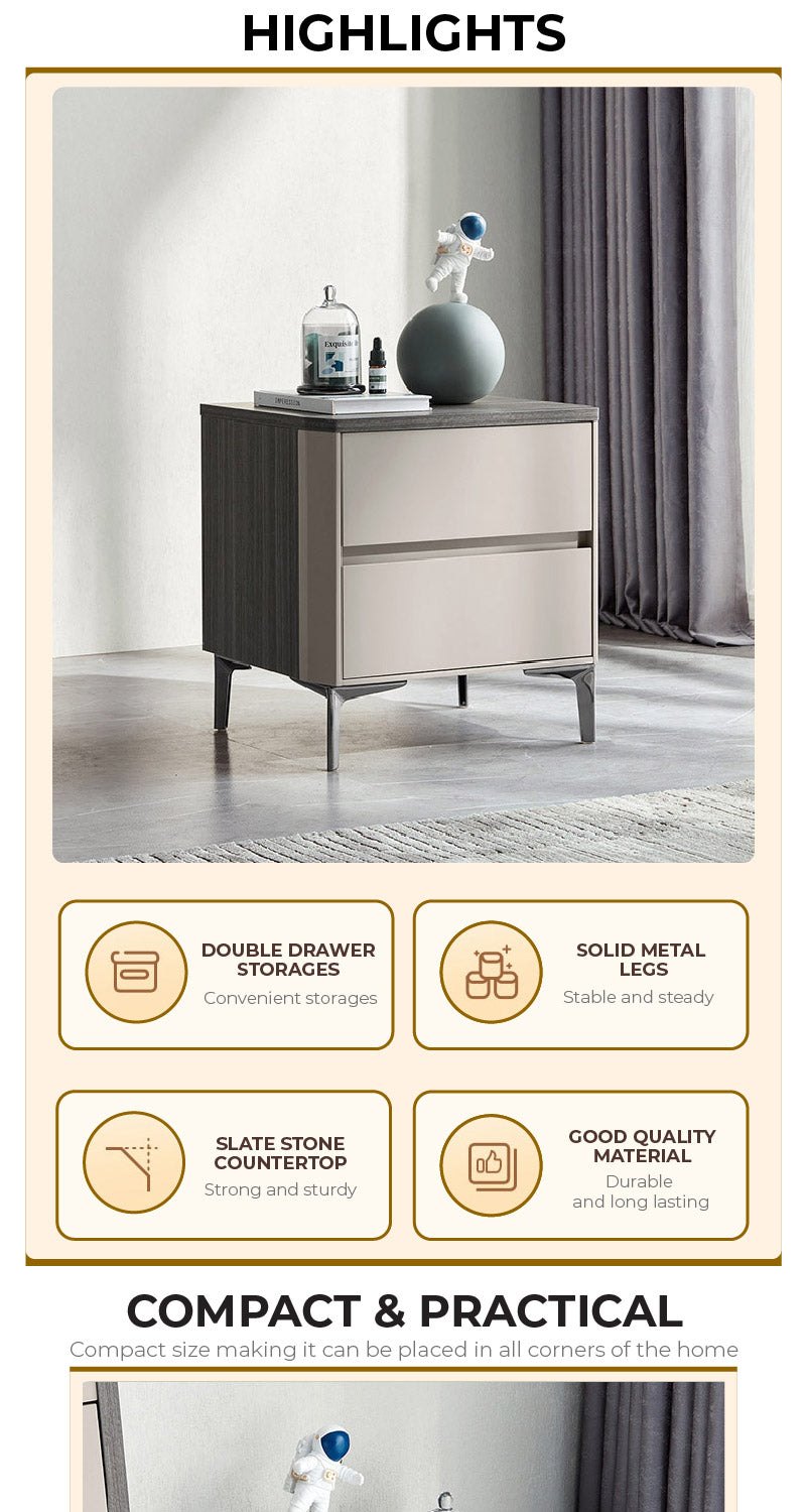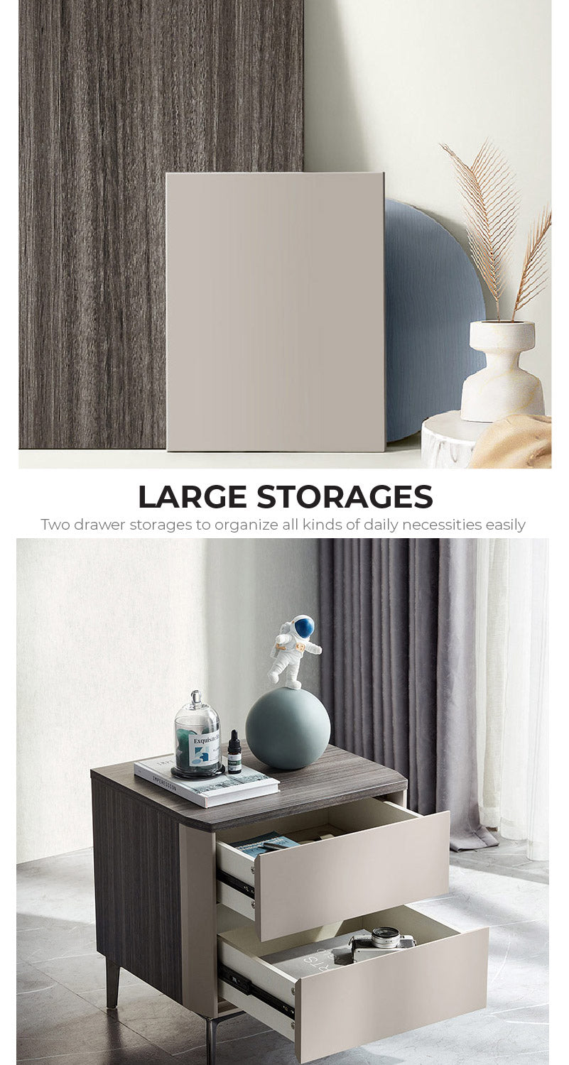 Perfect for organizing bedside essentials, the nightstand features smooth-gliding drawers with ample storage space. Its sturdy construction and thoughtful proportions are designed to offer both functionality and style. With its serene hues and practical design, this nightstand is the epitome of modern bedroom furniture.
