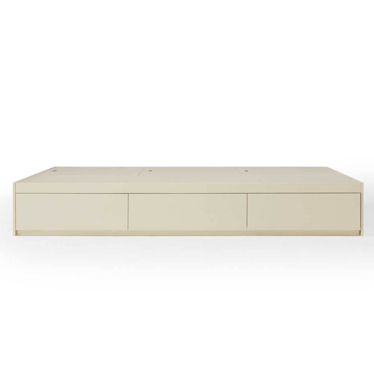 Integrated Lift-Top Storage:Three lift-top compartments create concealed vertical storage ideal for linens, seasonal items, and bulky bedding.