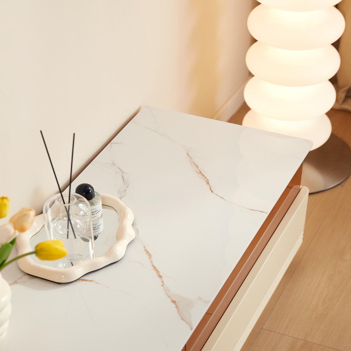 Veined Marble Tabletop:Provides a durable, polished display area for televisions or décor, adding an intrinsic cool tonal contrast to the design.