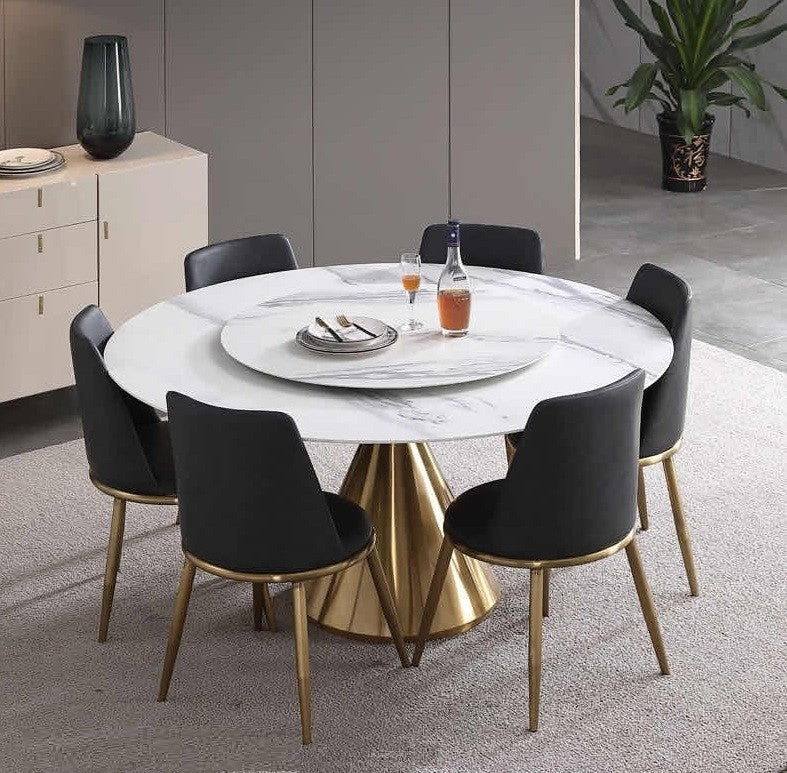 Gather around this contemporary-modern round dining table, designed to blend luxurious mixed materials with an organic modern twist. The open pedestal base features intersecting rounded squares with a slat design that beautifully showcases the natural wood grain. Finished in sienna and white plaster, this 60-inch table comfortably seats six, making it perfect for family dinners and social gatherings.