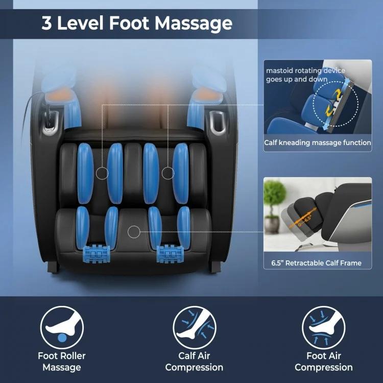 With 5 massage techniques, 3 width settings, and adjustable air intensity, this chair offers tailored relaxation from head to toe.