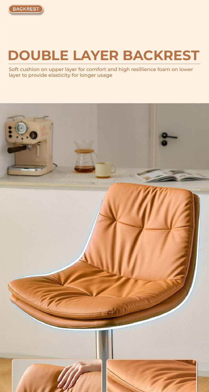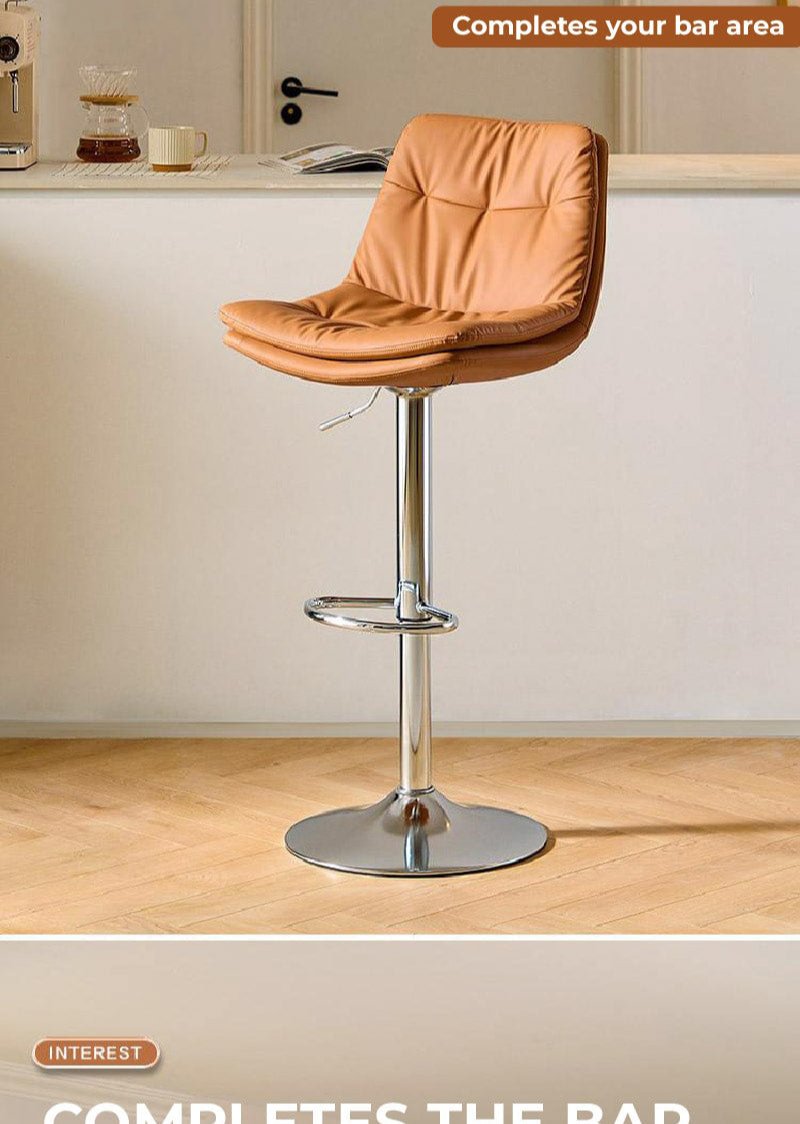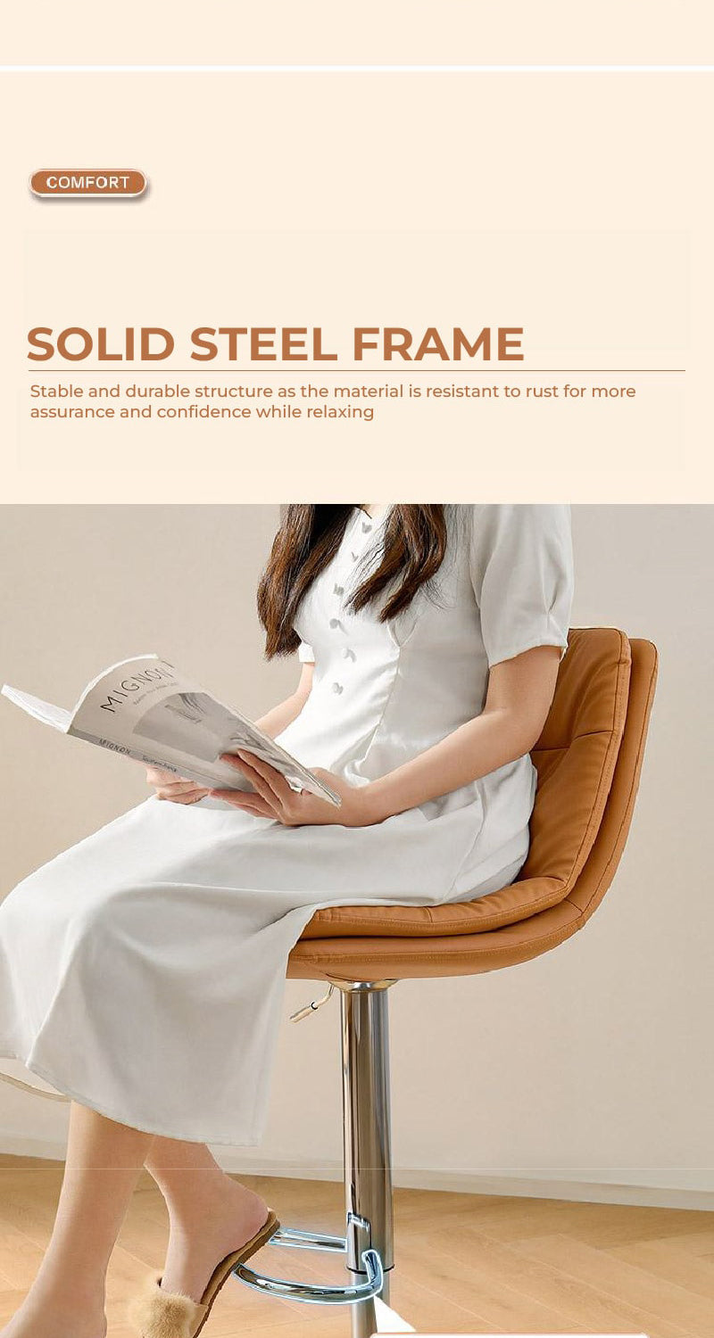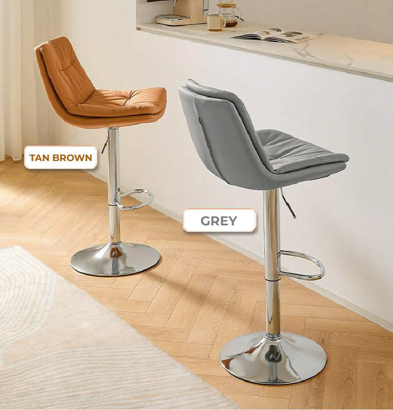 This sleek bar stool is the epitome of modern comfort with its extra-wide, soft seat designed for extended seating. The adjustable height feature ensures it fits a range of spaces, from kitchen counters to bar tables. The polished chrome finish gives it a sharp, contemporary look that pairs beautifully with the plush, cushioned seat.